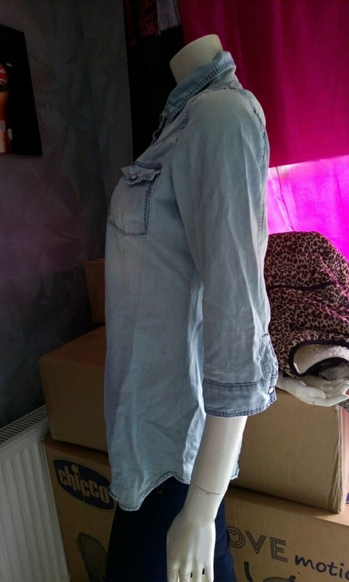 #chemise #jean #denim #neuve #tailleM #bleuclair #boutonnière #pressionsennacre #manches3/4 #musthave #incontournable #indémodable #tendance #toutessaisons