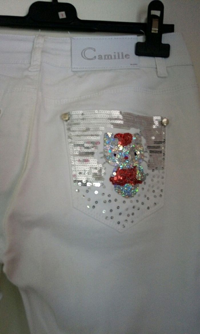 #pantalonslim #Camille #stretch #blanc #hellokitty #sequins #commeneuf #musthave #printemps #été #tendance #causal #taille36