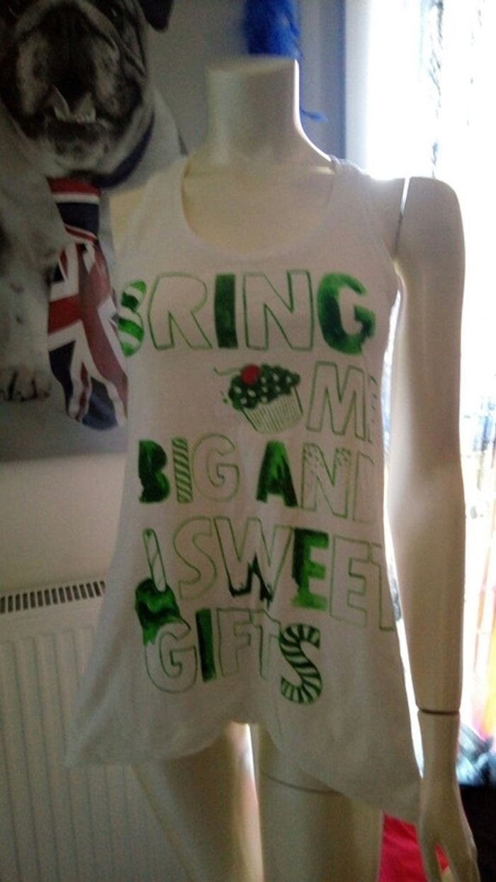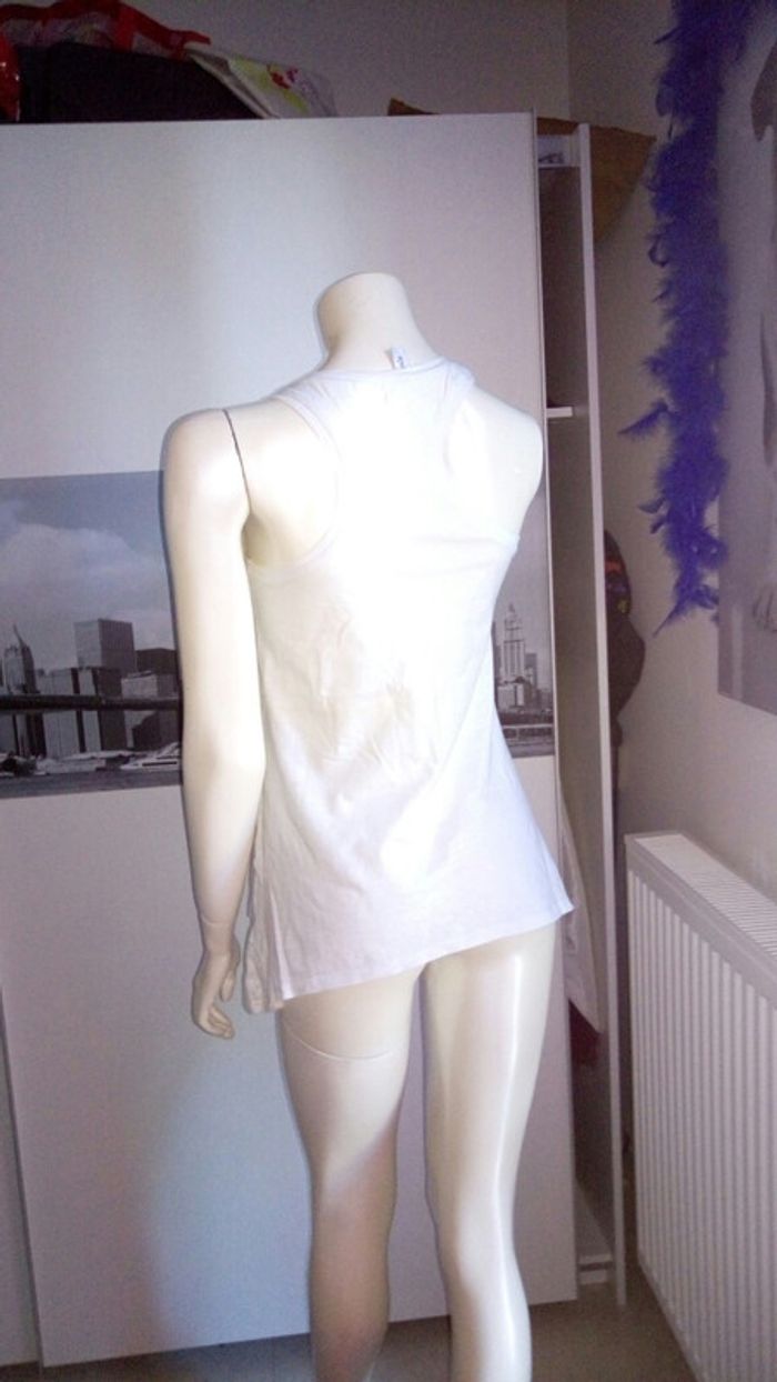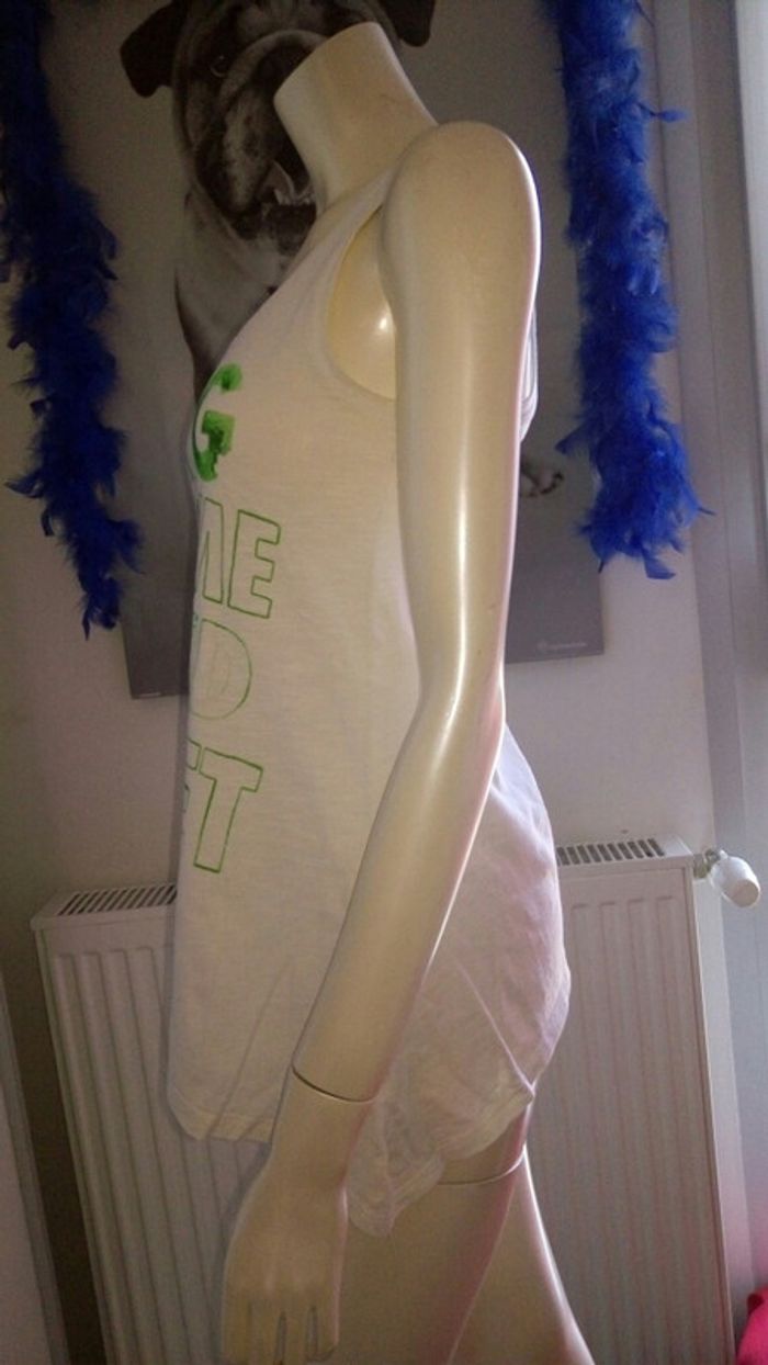 #débardeur #long #etatneuf #tailleS #blanc #imprimé #texte #muffin #musthave #asymétrique #surlescotés #ecritureverte #ete2017 #vacances #plage #piscine