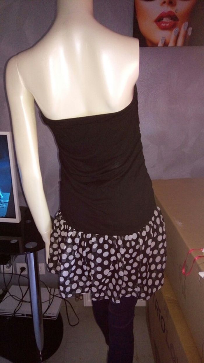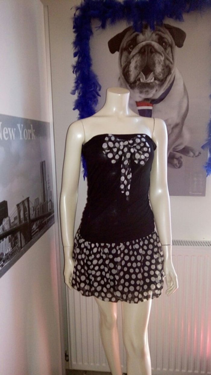 #robe #tunique #bustier #noir #imprimepoisblanc #bimatière #stretch #voile #tailleS #neuve #musthave #retrovintage #chic #casual #soiree #indémodable #brigitebardot #girly #ete2017 #vacances #plage