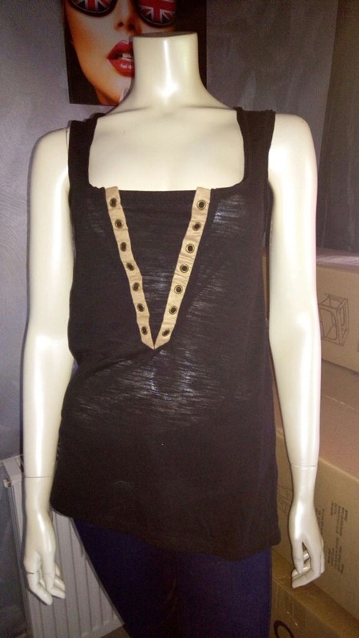 #débardeur #long #tunique #etatneuf #noir #camel #detailsoeillets #décolletécarré #tailleS #musthave #ete2017 #vacances #plage #piscine