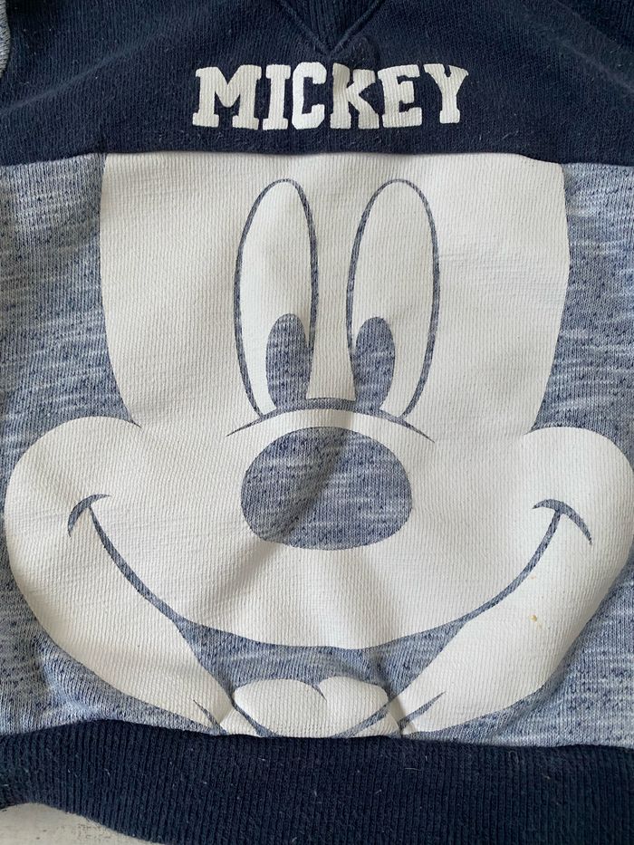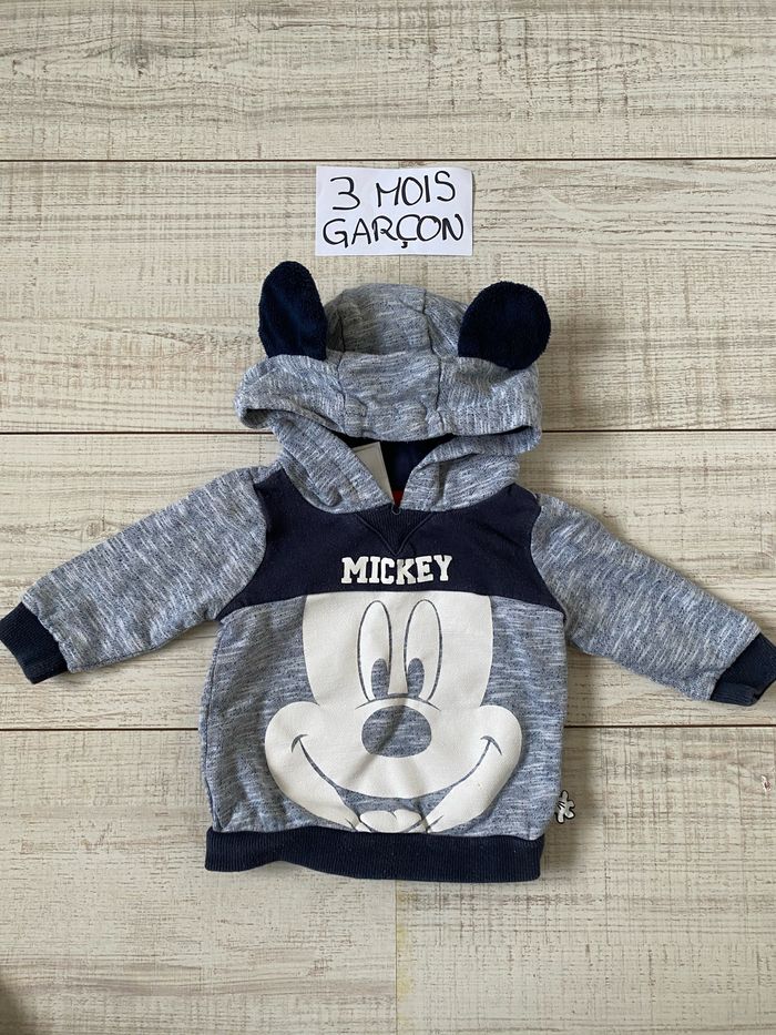 Sweat à capuche Motif : Mickey Âge : 3 mois / 62 cm Utilisation : passage par la tête Marque : Disney Baby Petit déchirure au col qui nécessite quelques points de couture #tiffanie4439_3mois