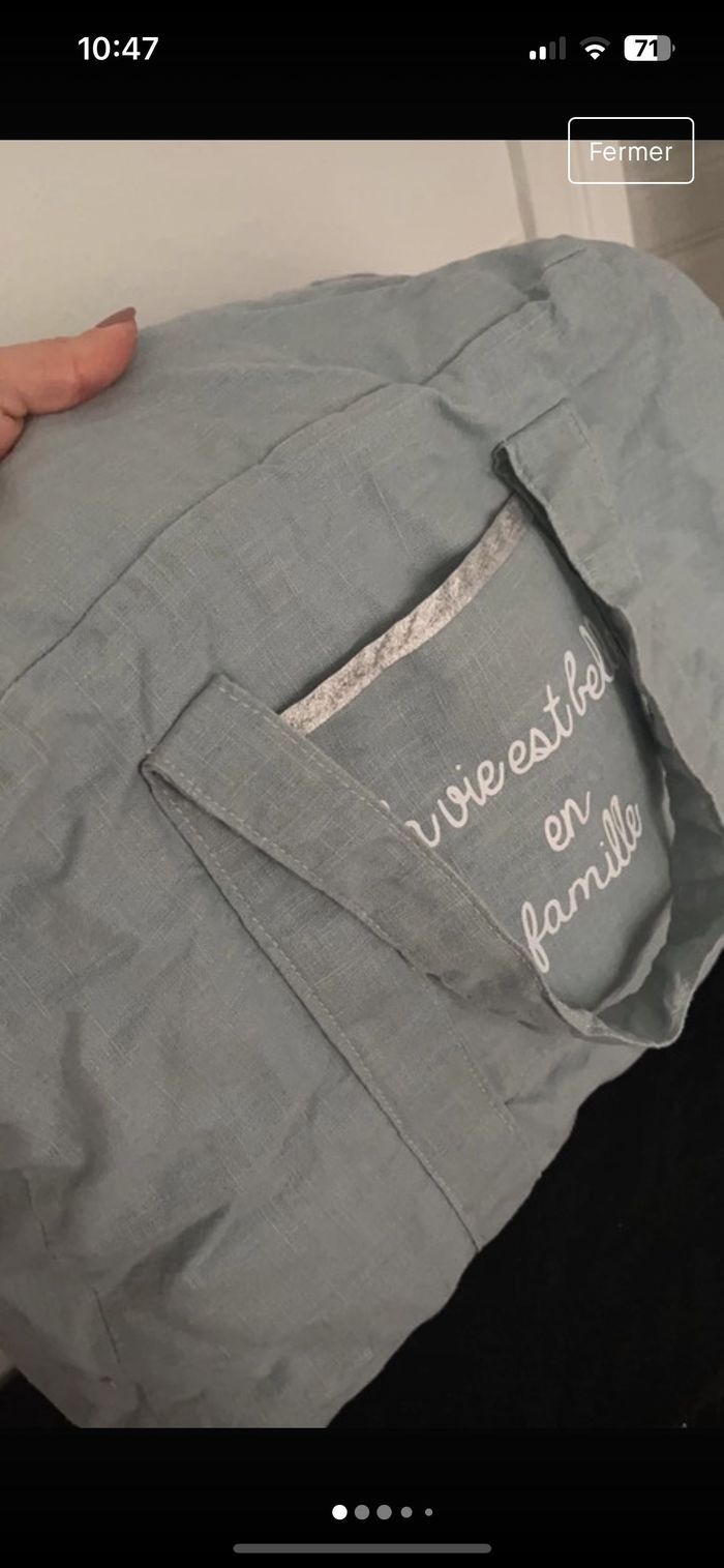 État impeccable je l ai utilisé une fois puis passé en machine raison pour laquelle il est un peu froissé Tout doux plein de rangements 50 cm longueur 30 cm hauteur 20 cm largeur