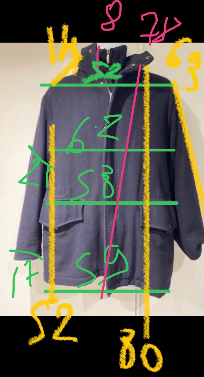 Je vends une veste caban Elle est en parfait état Comme neuf Veste Caban extérieur, 80 % laine, 20 % polyamide Intérieur polyamide, polyester envoyer un De la marque Cerruti 1881. Elle est en parfait état. Il y a un cordon de serrage à l'intérieur du Caban, de chaque côté, Si vous voulez la portée d'une autre façon que la forme typique de Caban. Il y a une poche intérieur avec un bouton Une double fermeture sur le devant La fermeture extérieure ferme de deux façons de ici quelques minutes, la fermeture. à glissière et double Une en haut il y a un curseur en haut et un autre en bas Il y a une capuche à l'intérieur du deuxième col en laine, la capuche et légère élastique. De chaque côté, elle n'a jamais servi. Il y a deux poches extérieures plaquées sur le devant. Elles ont une pression chacune pour fermer. Il y a deux Cols dont un en bord cote celui qui sera le plus près de la nuque et du cou La veste est doublée façon matelassé. avec du tissu 100 % polyamide en extérieur et à l'intérieur il y a du polyester 100 %. Les Mesures sont données sur Photos Maine en extérieur marron à l'intérieur Mon dress1600plaucui