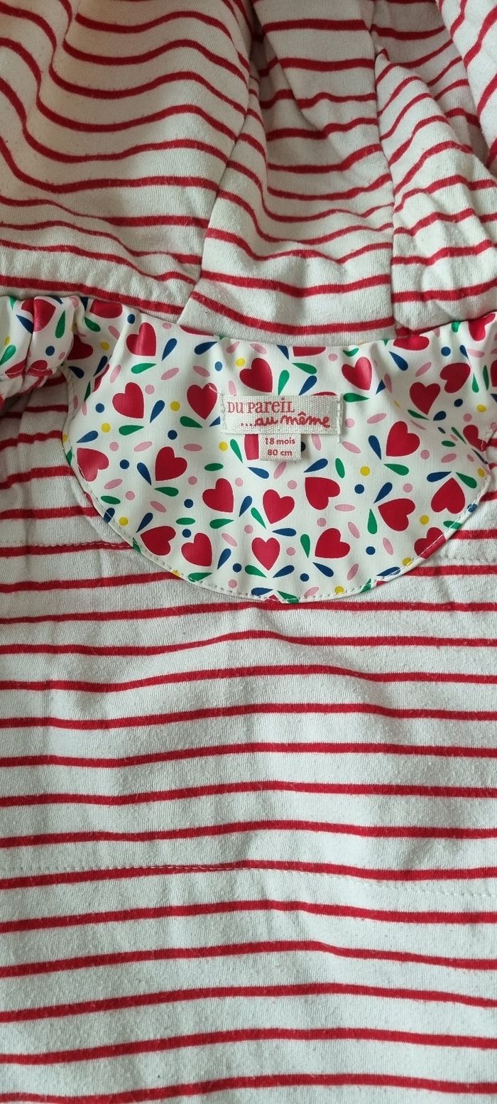 - blanc cœur rouge - doublure interne rayure rouge - boutons un peu passés (cf. photos)