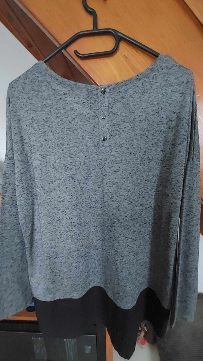 FEMME 38/M N°1453 long maillot Gris chiné / bas voile noir Longueur 70 cm Bouton au dos Taille 38 / m Kiabi 4€ #kelly_femmeT38