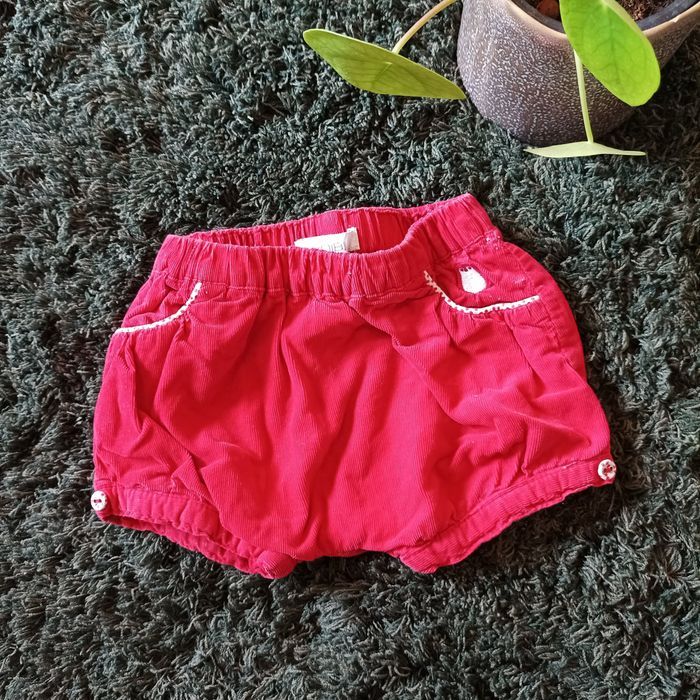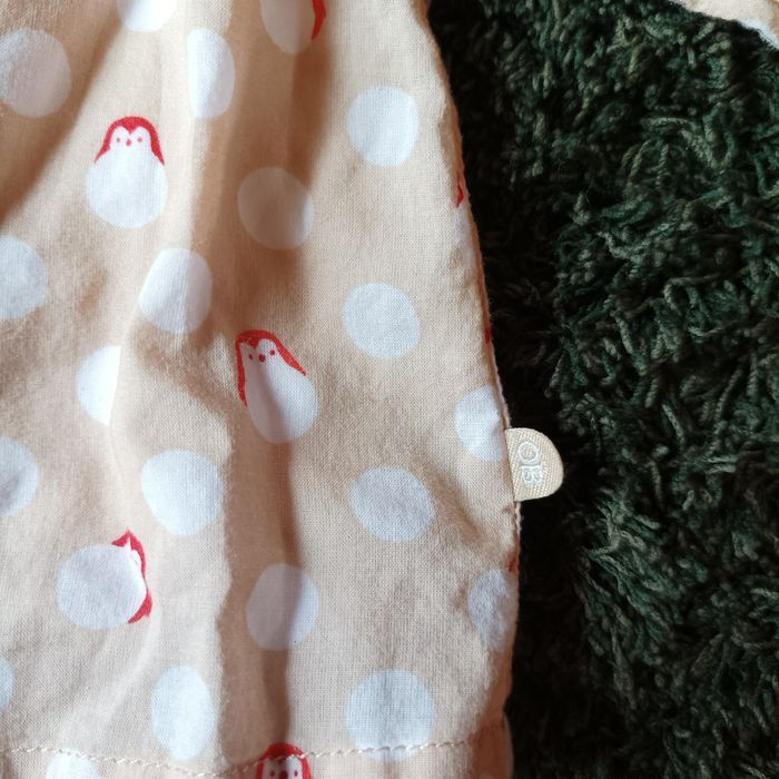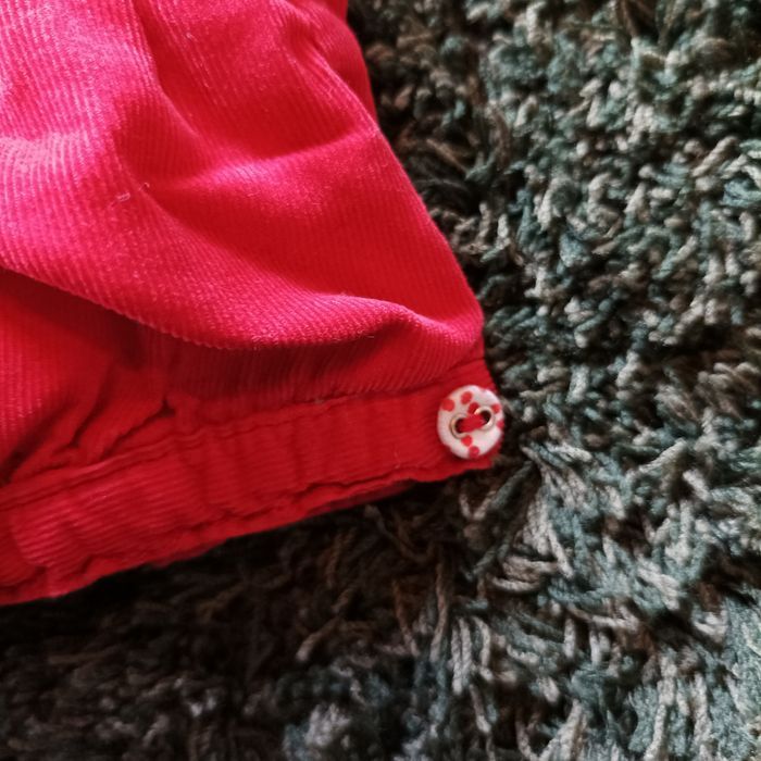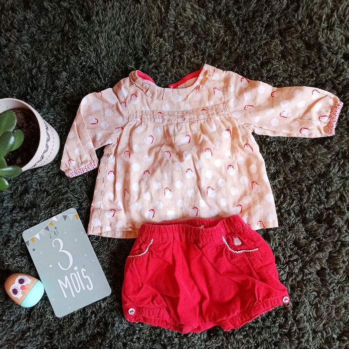 Adorable ensemble en parfait état car a été très peu porté Il comprend une blouse doublée à pressions dans le dos motifs pingouins + un short épais rouge assorti, en velours côtelé.