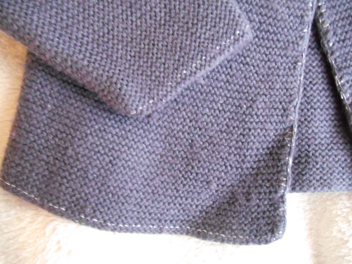 Gilet en laine bleu marine façon tricot bien chaud, 2 boutons en haut, bordures argentées Taille 6 mois Très bon état Voir d'autres articles de même taille dans mon dressing