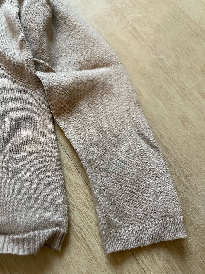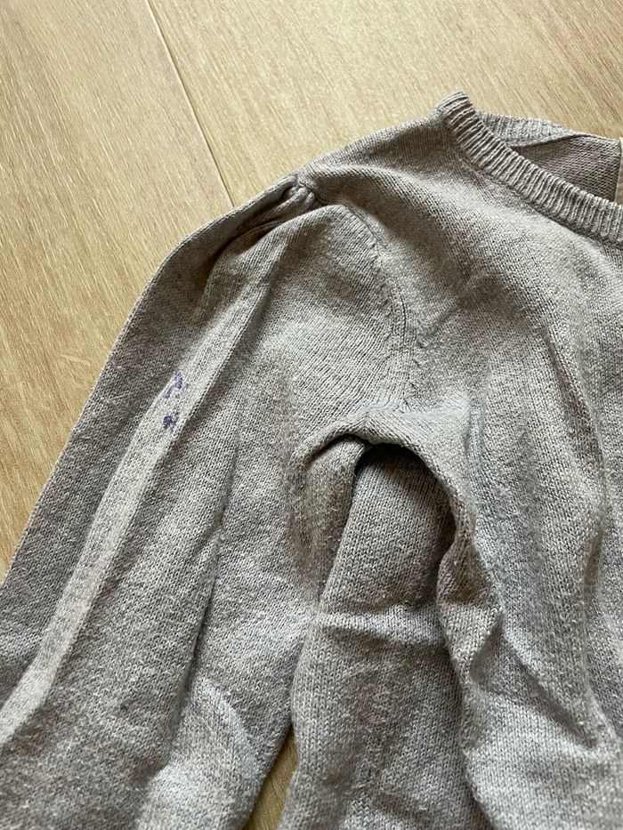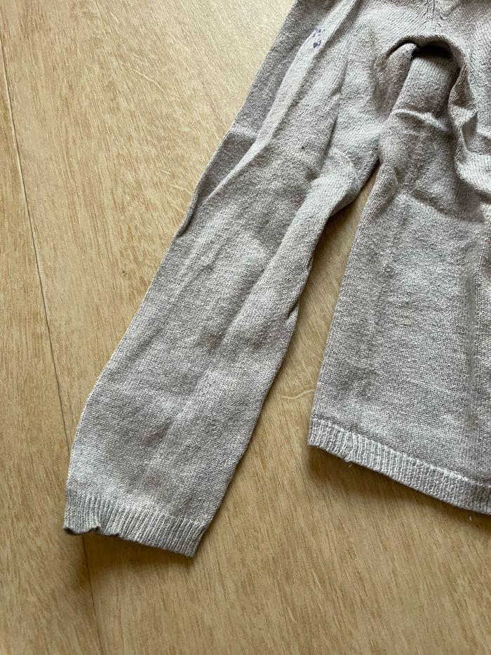 2 gilets bien portés, quelques bouloches ❌ sur le gris une tache violette en haut d’une manche ❌ sur le beige une légère tache au dos d’une manche Taille 4/5 ans