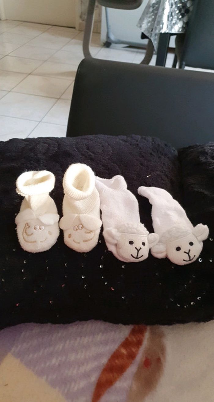 Lot chaussettes chaussons de naissance