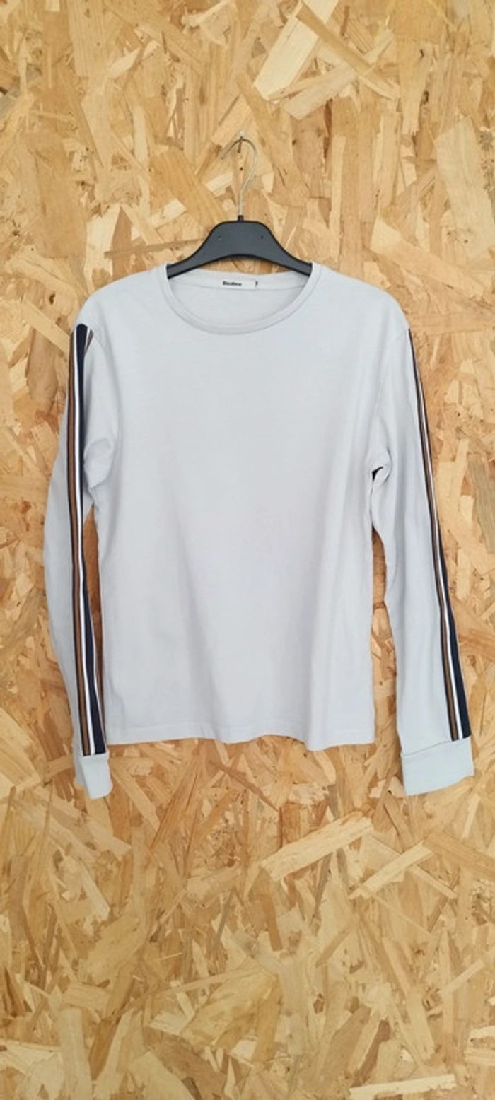 T-shirt manches longues Blanc avec rayures côté des manches Bizzbee XXS Correspond a du 12 ans. #klemlogarcon12ans