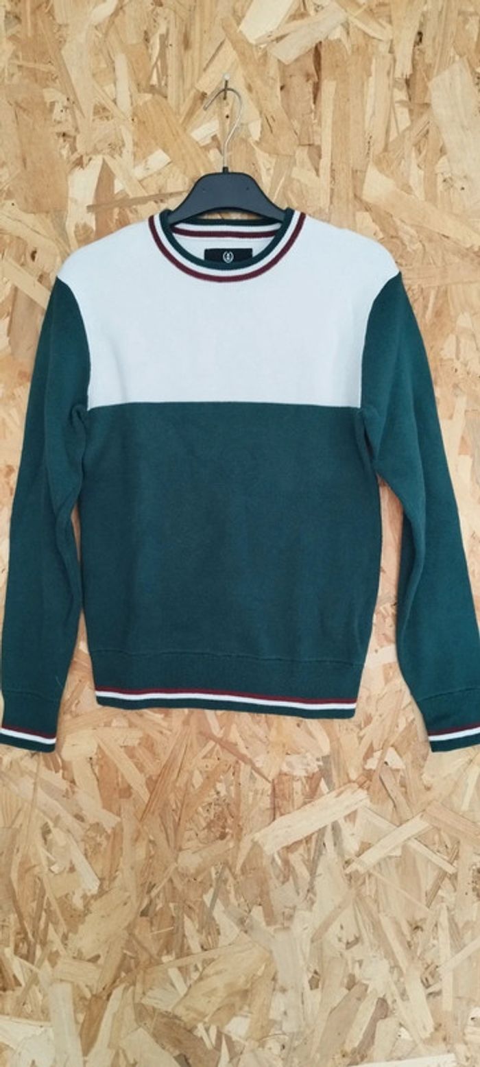 Pull vert foncé et blanc Bizzbee XXS Correspond à un 12 ans. #klemlogarcon12ans