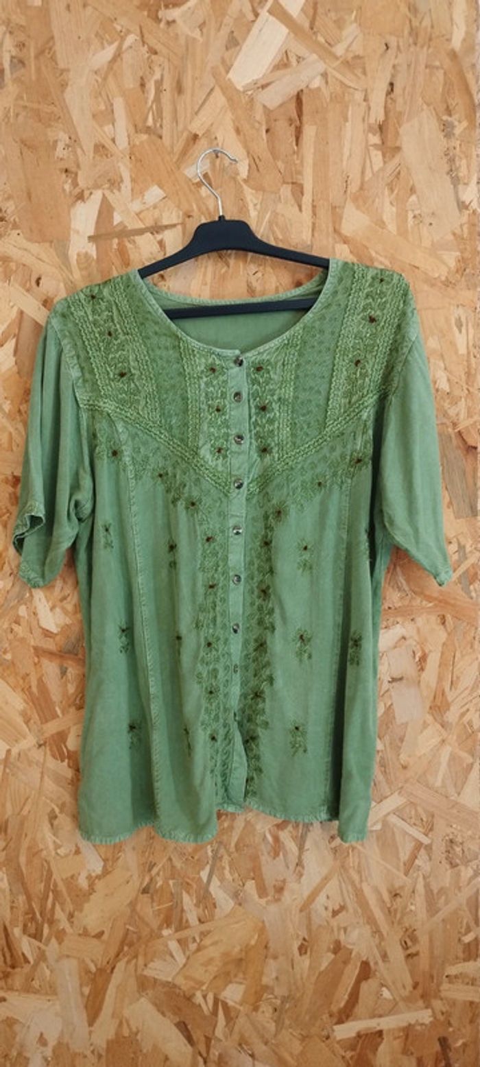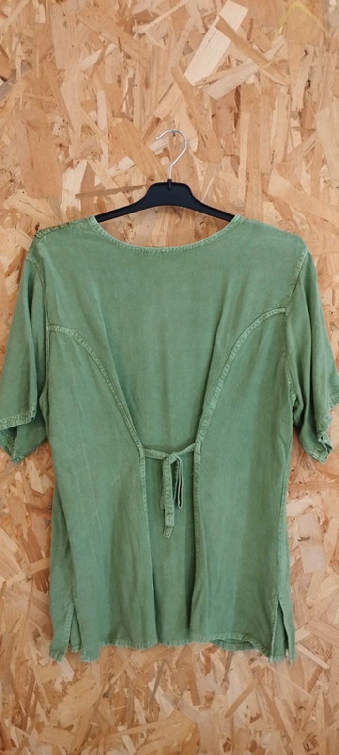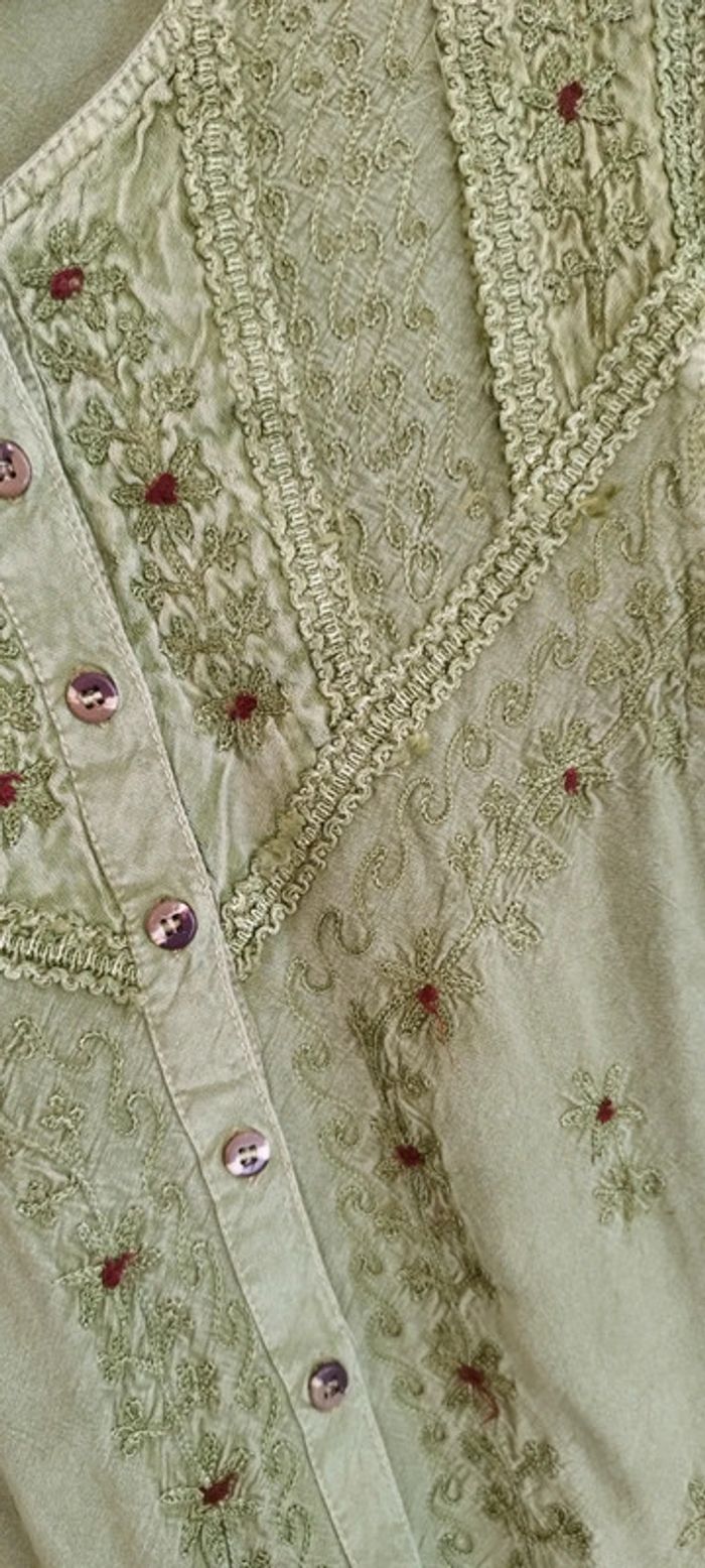 Tunique vert pâle Fleurs brodées Taille M #klemlofemmem