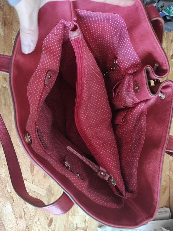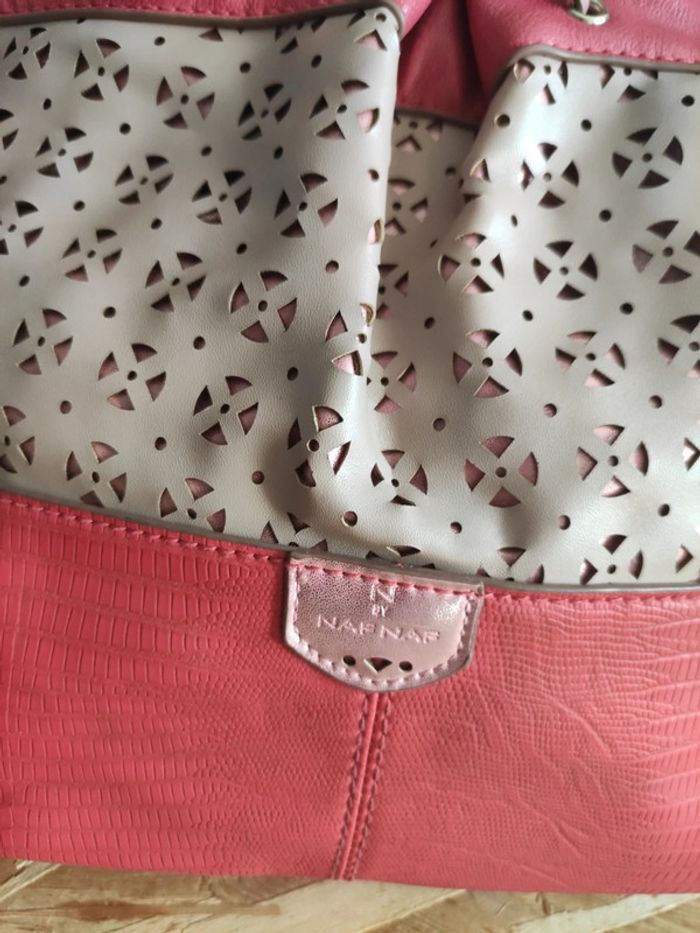 Sac en simili cuir Rouge beige et rose Multiple poche intérieure. Poche extérieure Accroche clé a l intérieur. Naf Naf #klemlosac