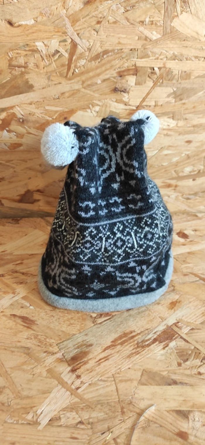 Bonnet gris et noir 4 pompons Bandeau polaire à l intérieur. #klemloaccessoires