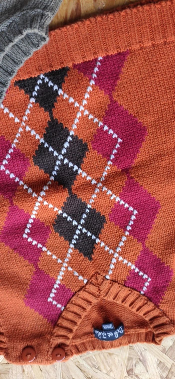 Pull sans manches x 2 Un orange avec losanges (Bob et Jules) Un taupe uni ( Obaibi ) 12 mois #klemlogarcon12mois