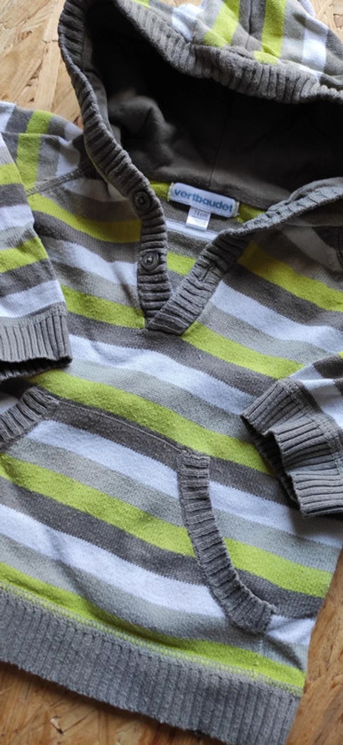 Pull rayé taupe et vert Avec capuche Vertbaudet 12 mois #klemlogarcon12mois