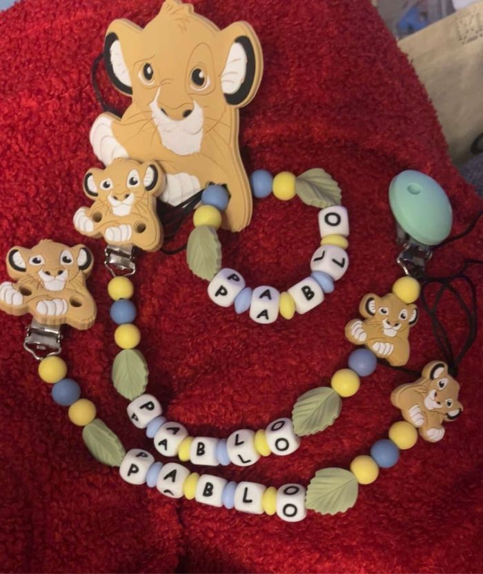 Attache tétine personnalisé en silicone ou en bois au souhait de l’acheteur . Personnalisable au choix de l’acheteur que ce soit la couleur comme le prénom ou le thème . Le fil est doublé pour plus de sécurité tout le long de l’attache tétine. N’hésitez pas à me demander et regarder mon dressing. Une photo vous sera envoyée avant l’expédition pour vous ayez un aperçu du rendu. Tous les produits sont réalisés avec du materiel spécial conçu aux bébés , enfants.