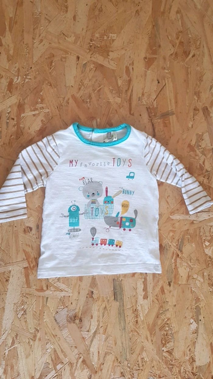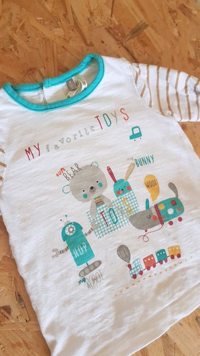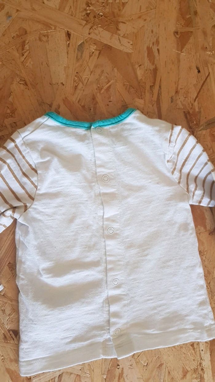 T shirt blanc et beige. Motif sur le devant Ouverture dans le dos avec pressions. 6 mois Orchestra #klemlogarcon6mois