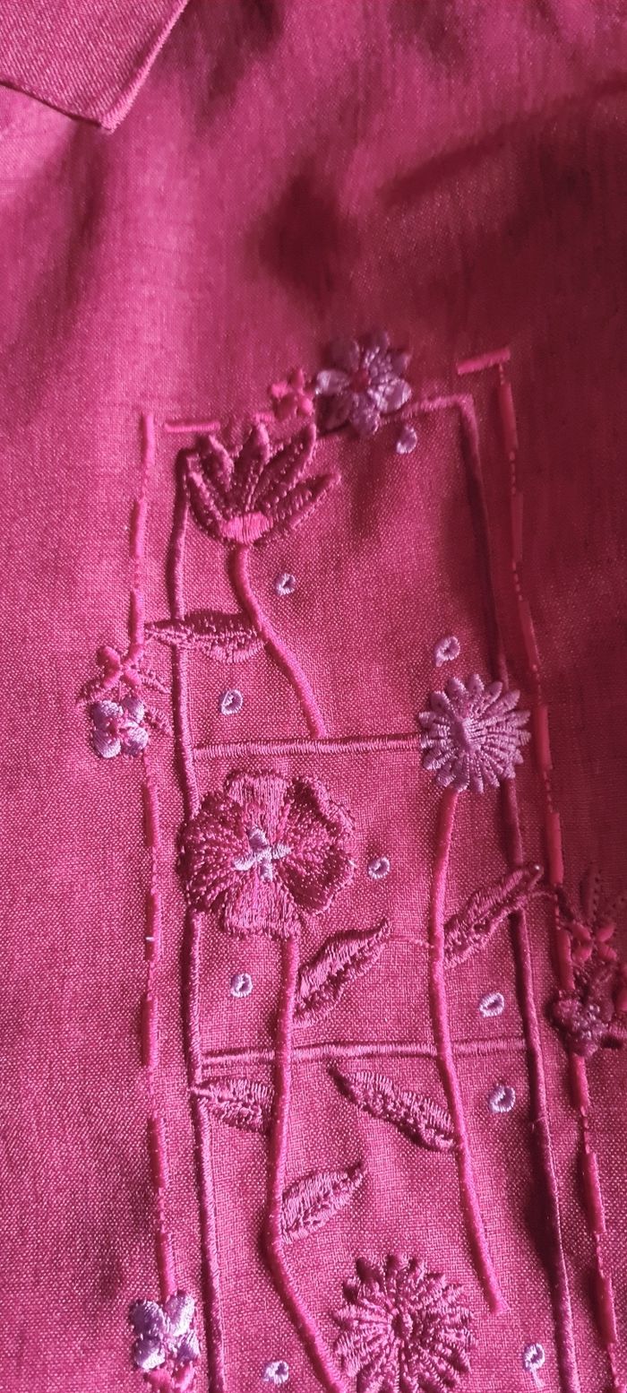 Chemise manches longues Rouge foncé Taille L Broderies fleurs sur le devant Parfait état, très peu portée