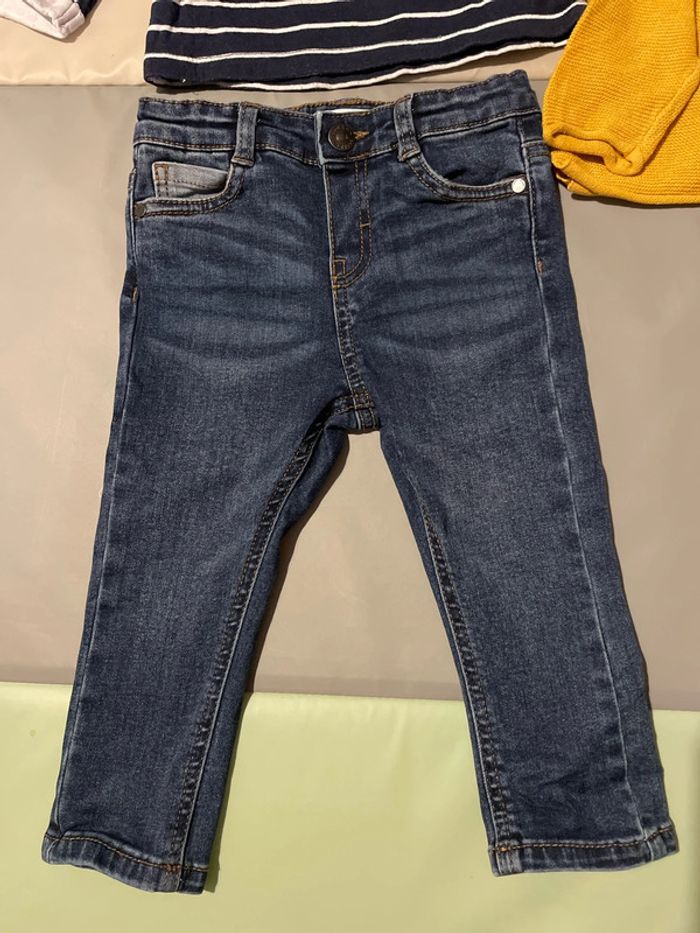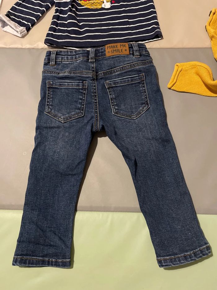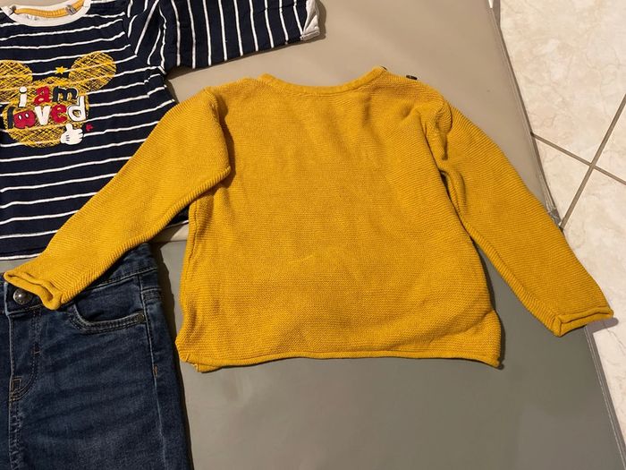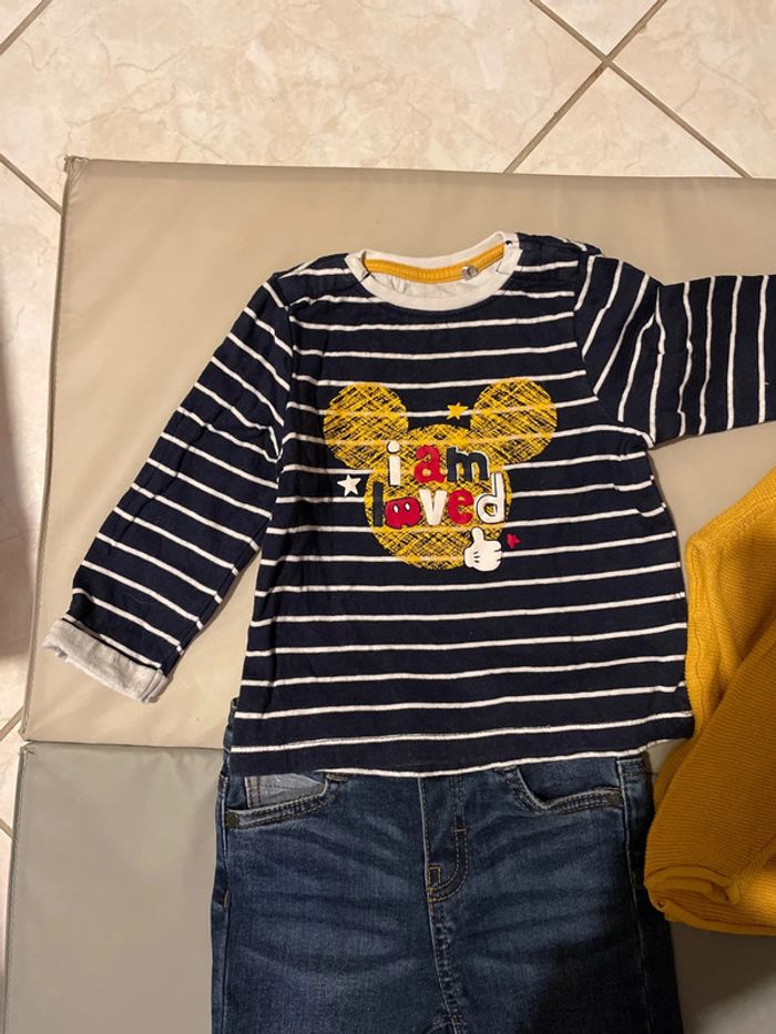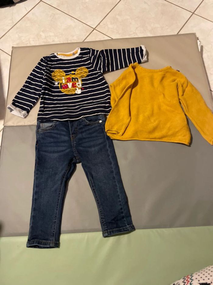 Ensemble 18 mois composé d’un jean resserrable à la taille, d’un pull en laine et d’un haut à manches longues Mickey. Très bon état, voir quasi neuf. #dressingdeMilo18moisgarçon