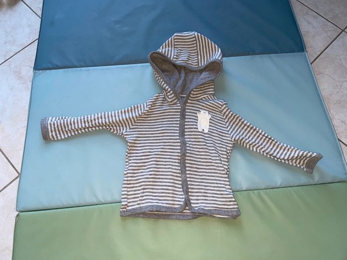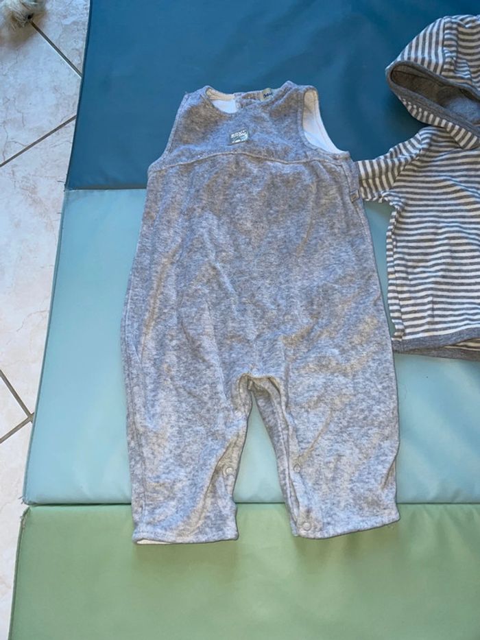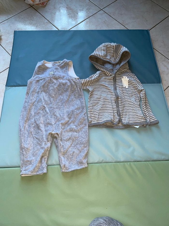 Ensemble 12 mois composé d’une salopette chaude qui s’ouvre entre les jambes (très pratique pour les changes) et d’un gilet à capuche qui se ferme grâce à des pressions. Très bon état #dressingdeMilo12moisgarçon