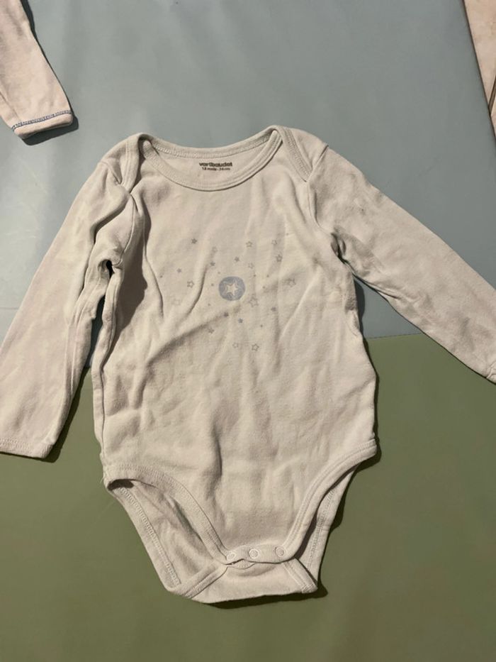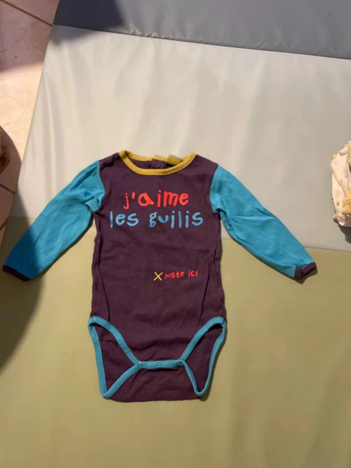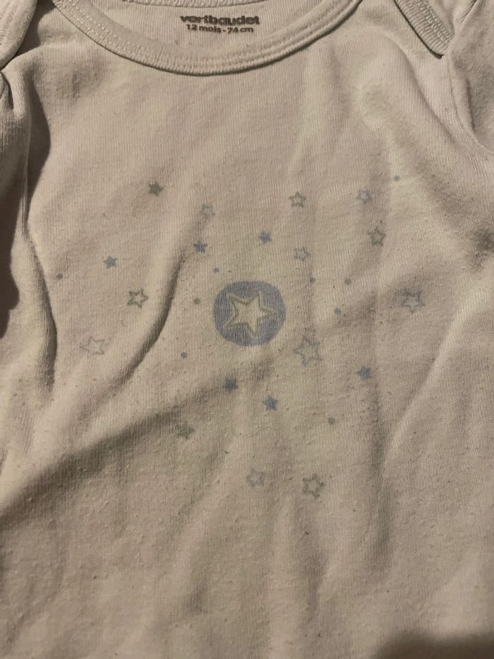 Lot de 6 bodies 12 mois. 4 sont en très bon état (bien que les couleurs ne soient plus aussi vives qu’au début, je préfère le préciser) et 2 sont en bon état car usés au niveau des pressions (cf. photo) mais ils peuvent dépanner car ils sont encore fonctionnels. #dressingdeMilo12moisgarçon