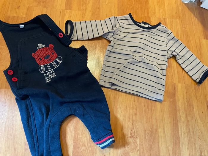 Ensemble 3 mois composé d’une salopette confortable et d’un haut à manches longues. Très bon état #dressingdeMilo3moisgarçon