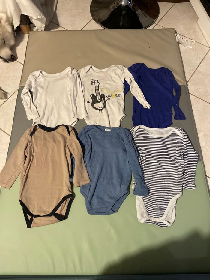 Lot de 6 bodies manches longues 18 mois en bon état. Il n’y a pas de défauts majeurs mais les couleurs ne sont plus aussi éclatantes qu’au debut. #dressingdeMilo18moisgarçon
