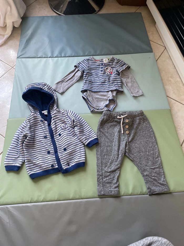 Ensemble 6 mois Dalmatien composé d’un body t-shirt à manches longues, d’un gilet à capuche en laine et d’un pantalon de jogging. Ensemble en excellent état #dressingdeMilo6moisgarçon
