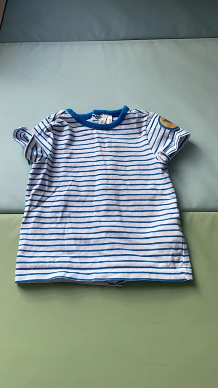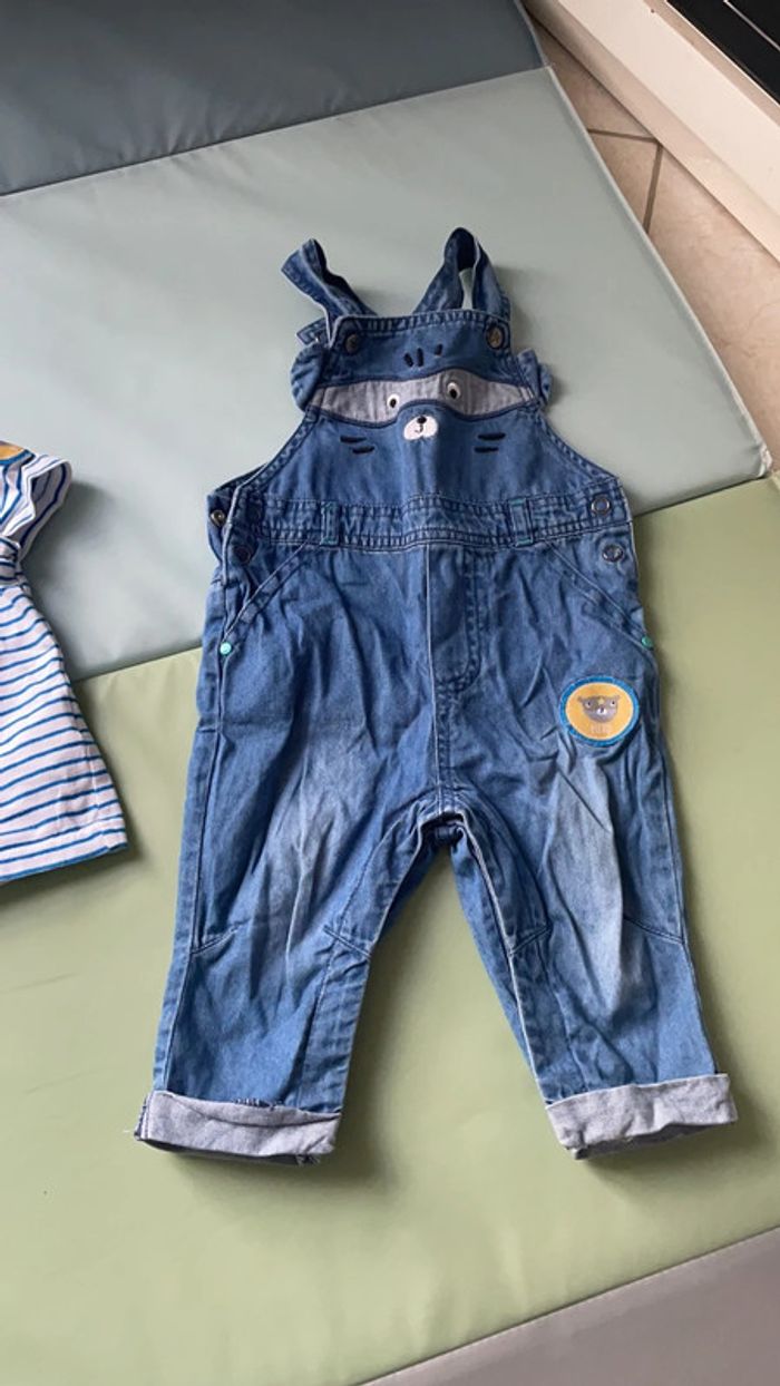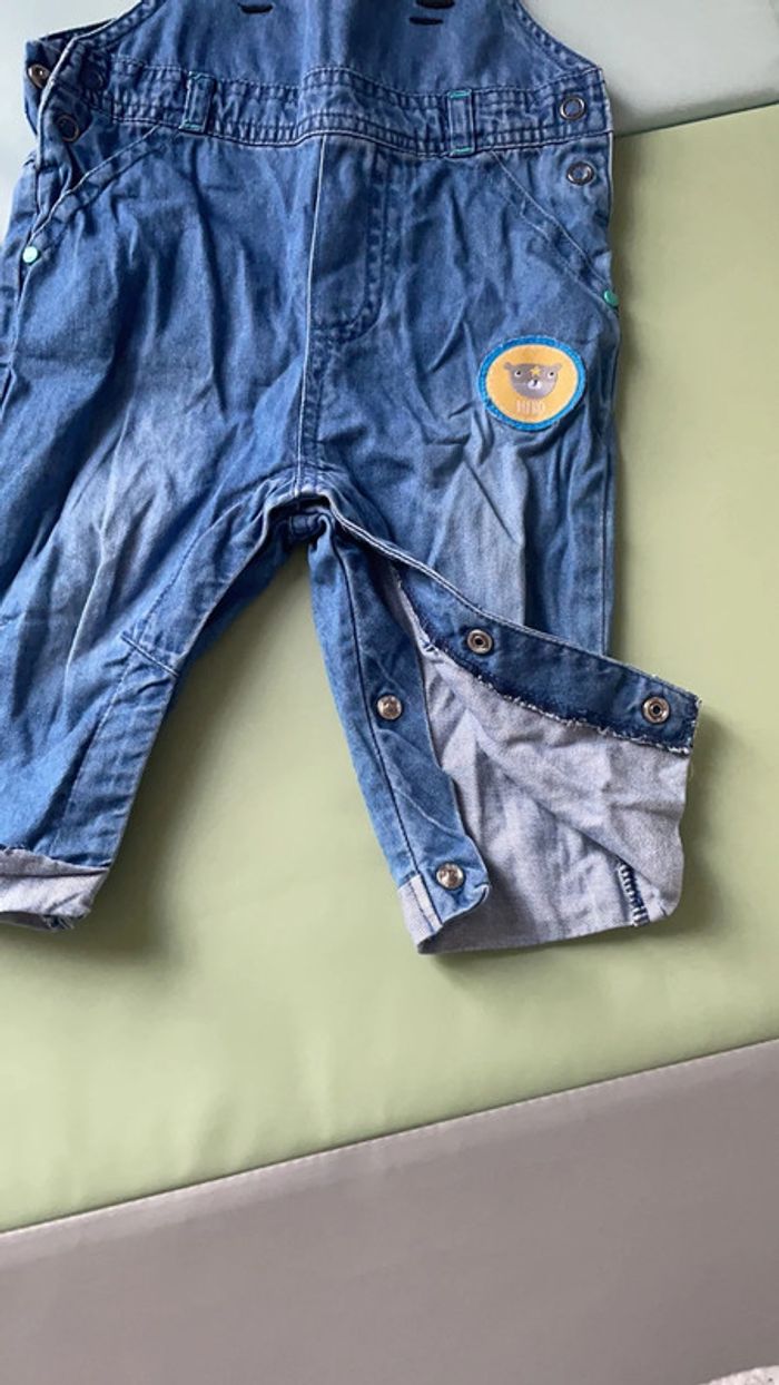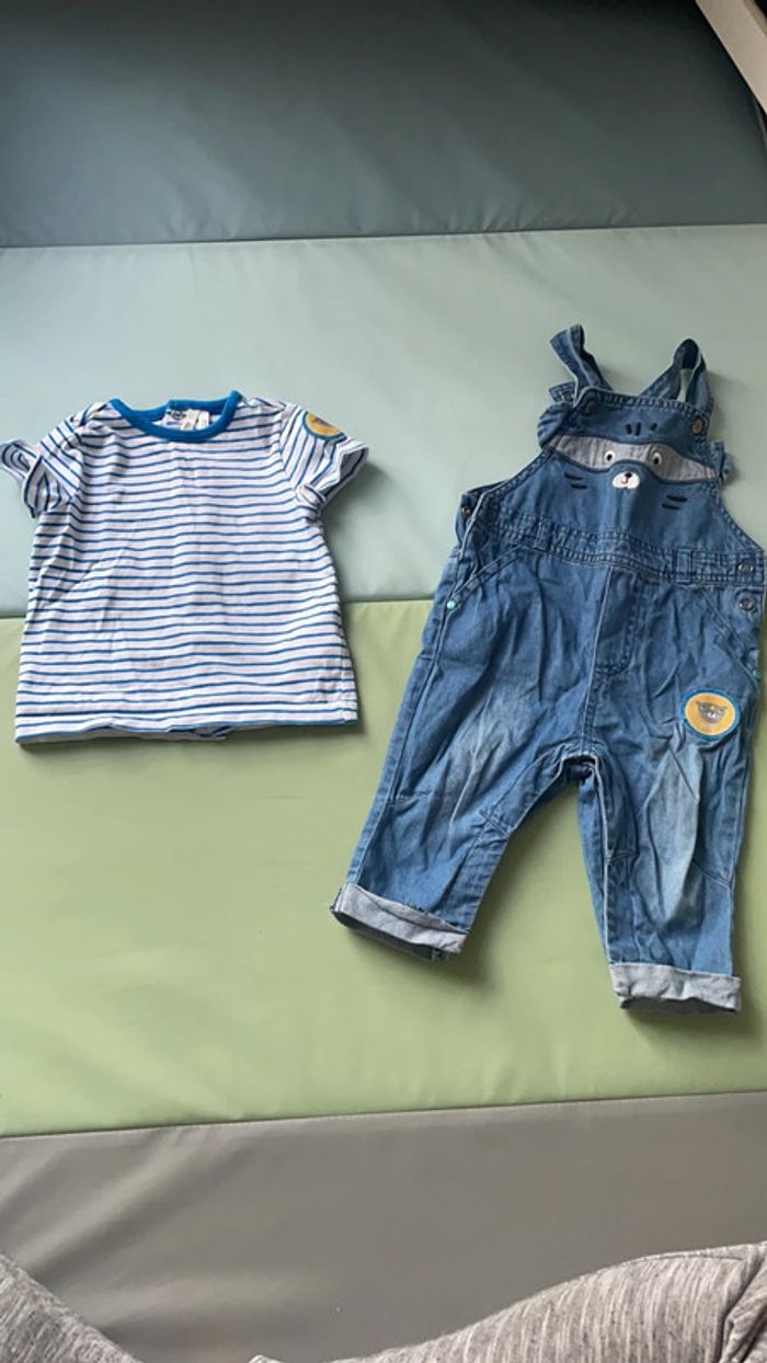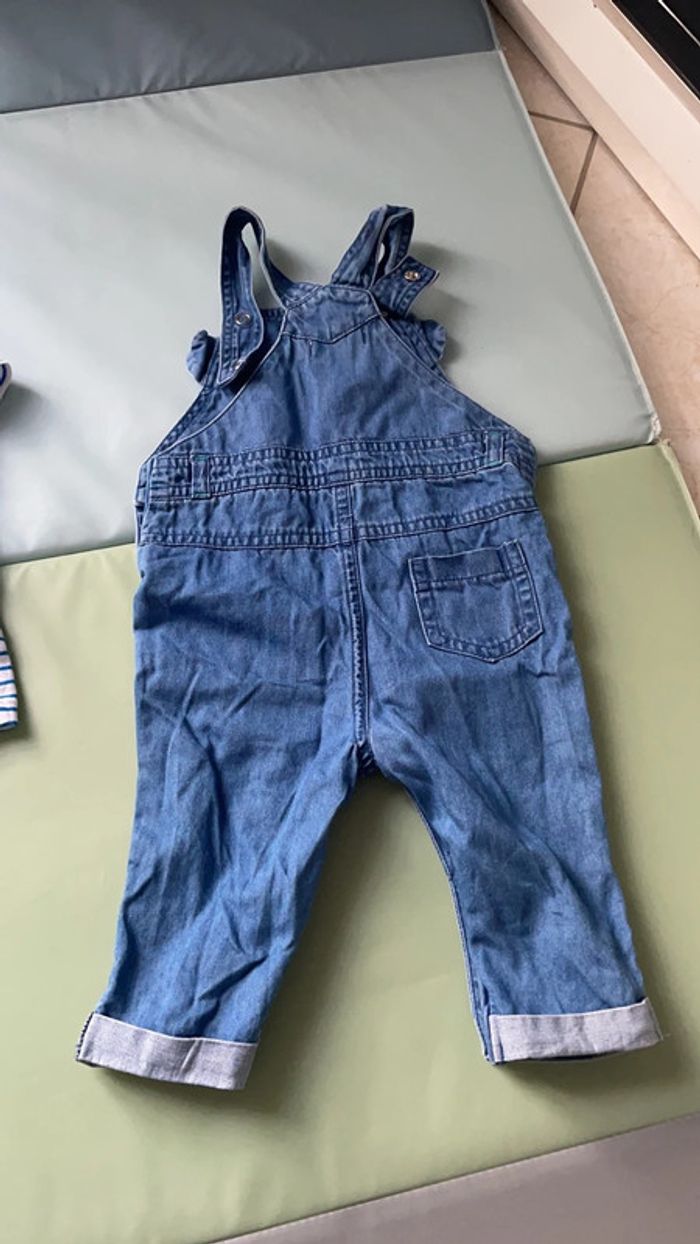 Ensemble 6 mois composé d’une salopette en jean avec ouverture entre les jambes très pratique pour les changes et d’un t-shirt qui se ferme à l’arrière par des pressions. Très bon état #dressingdeMilo6moisgarçon