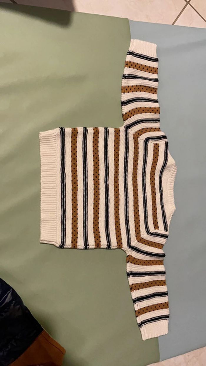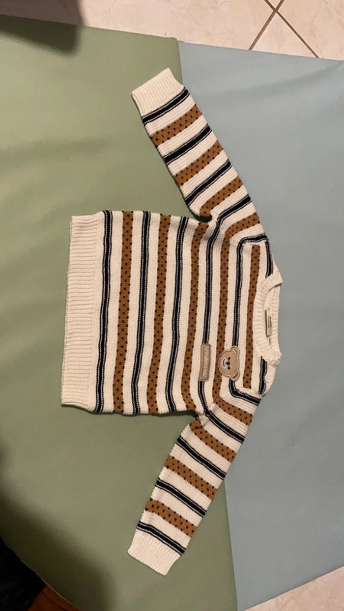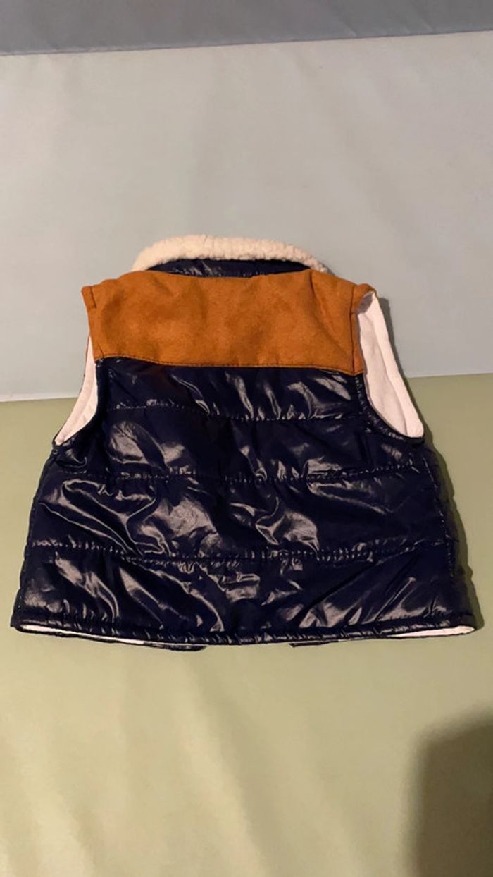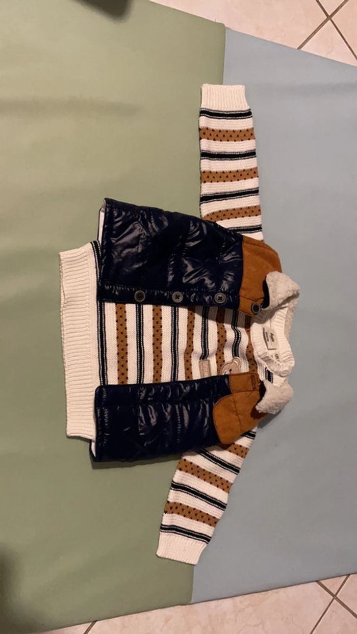 Lot 6 mois hiver composé d’une salopette en jean, d’un haut à manches longues, d’un pull en laine et d’une doudoune sans manche en imitation daim. Très bon état #dressingdeMilo6moisgarçon