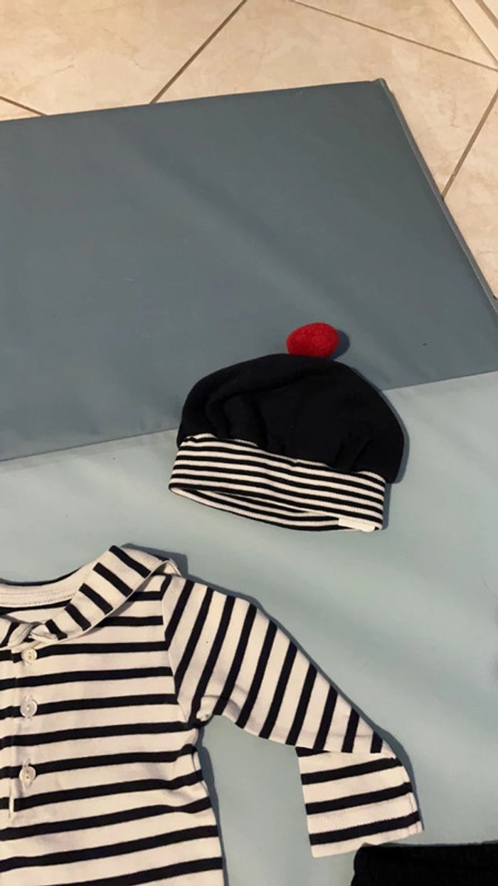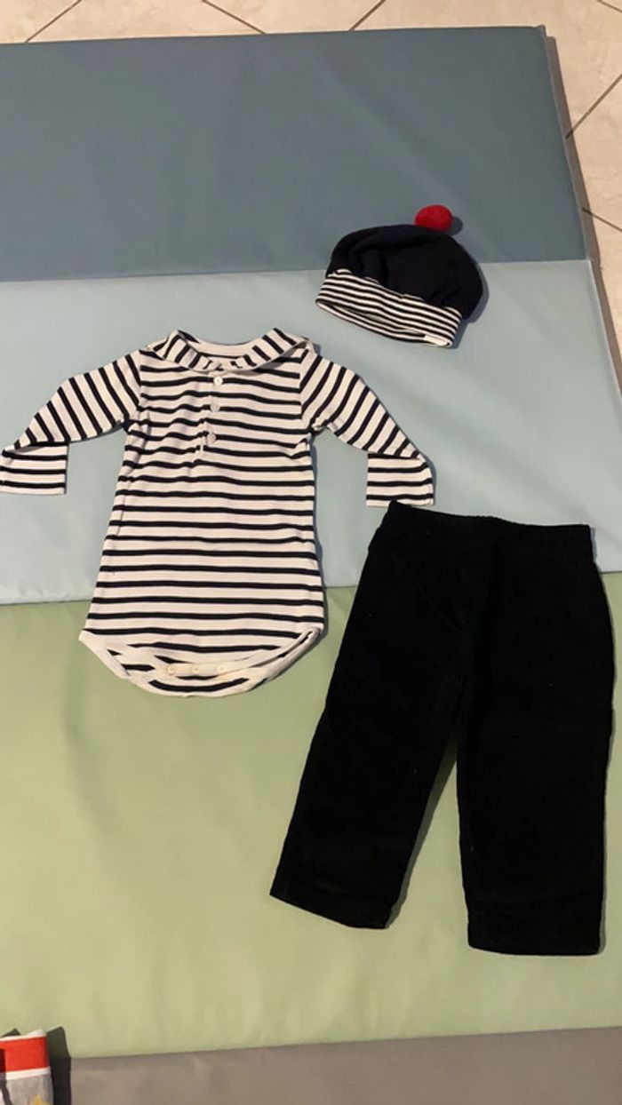 Ensemble 6 mois composé d’un pantalon en velours, d’un body avec col et d’un chapeau. Très bon état si ce n’est une légère décoloration au niveau des pressions entre les jambes mais ne se voit pas porté avec le pantalon. #dressingdeMilo6moisgarçon