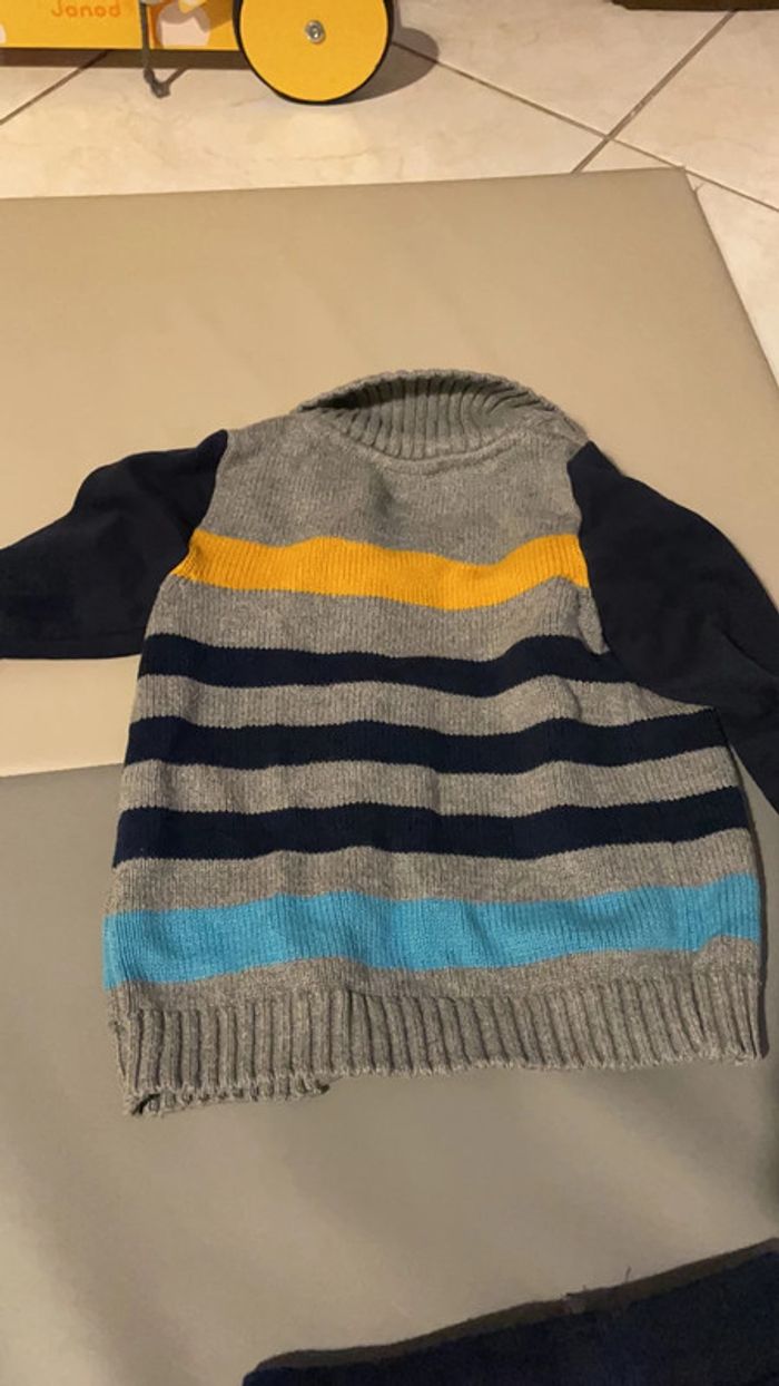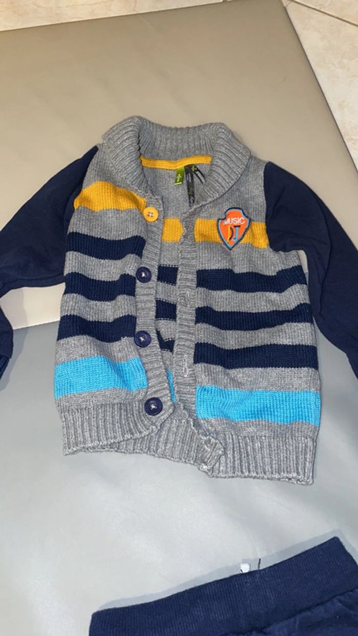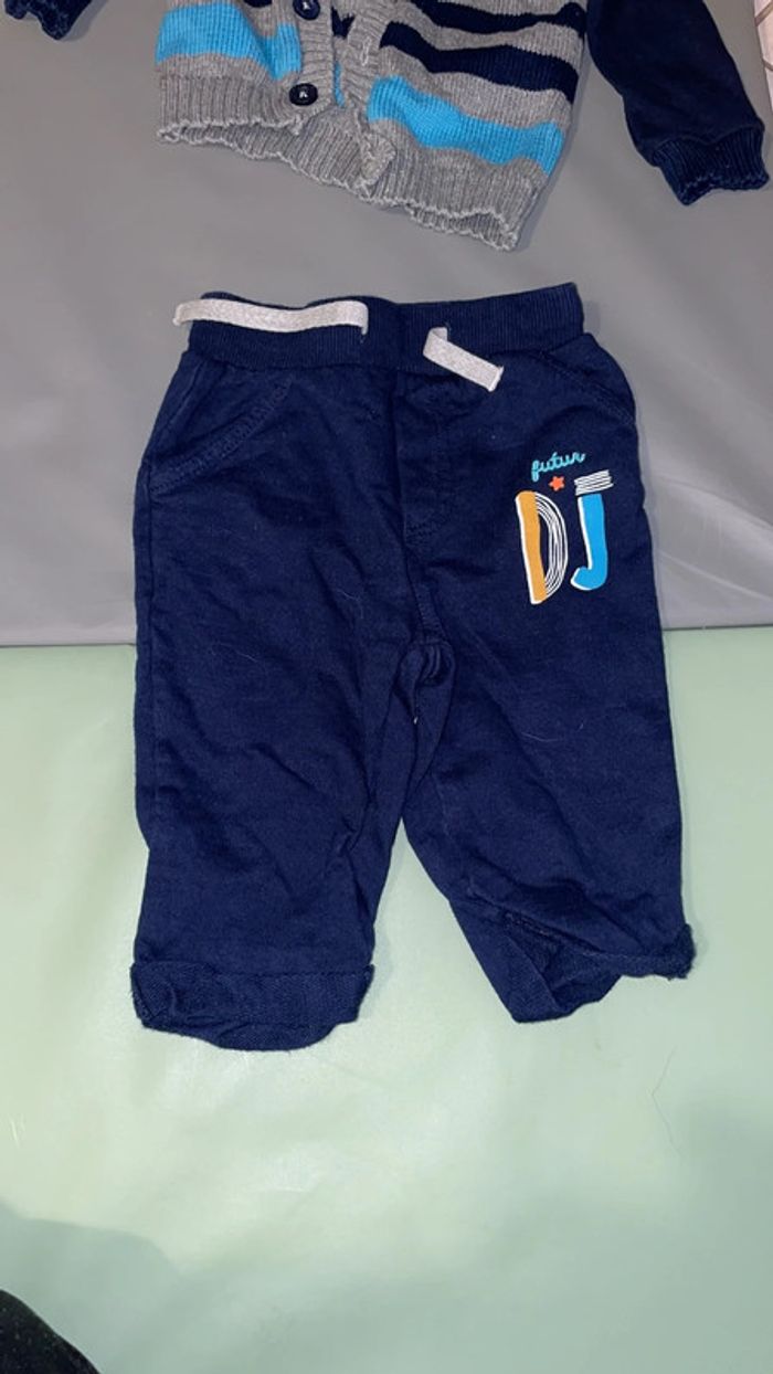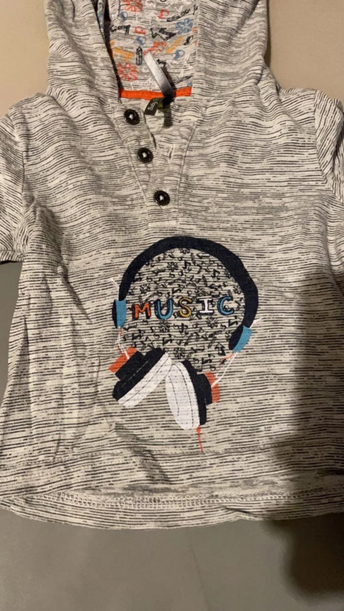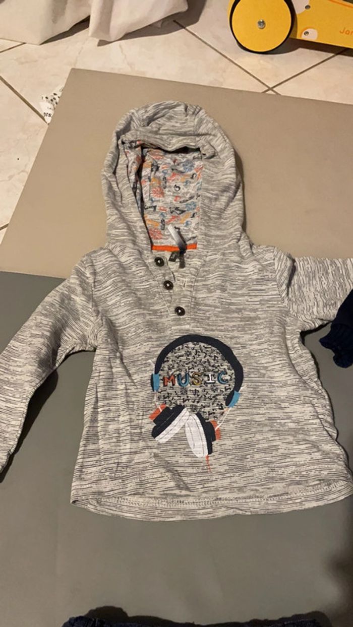 Ensemble 6 mois composé de 4 pièces : un pantalon, un jogging, un haut à manches longues et capuche et un gilet en laine. Excellent état, thème « music » #dressingdeMilo6moisgarçon