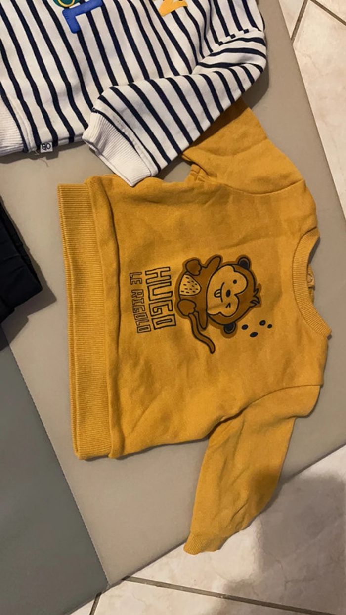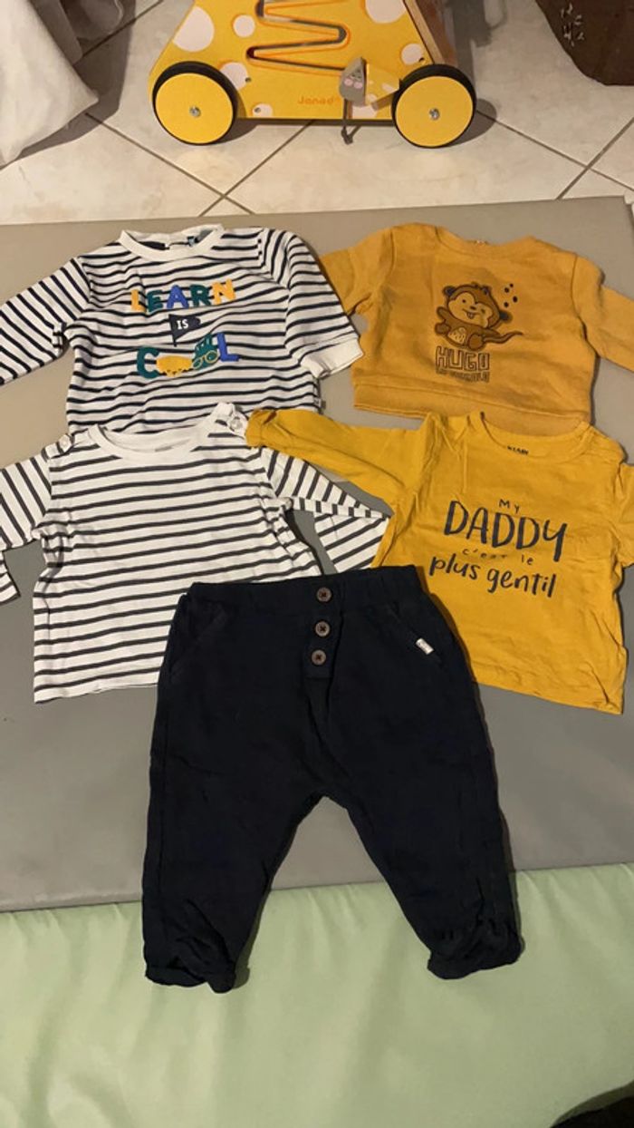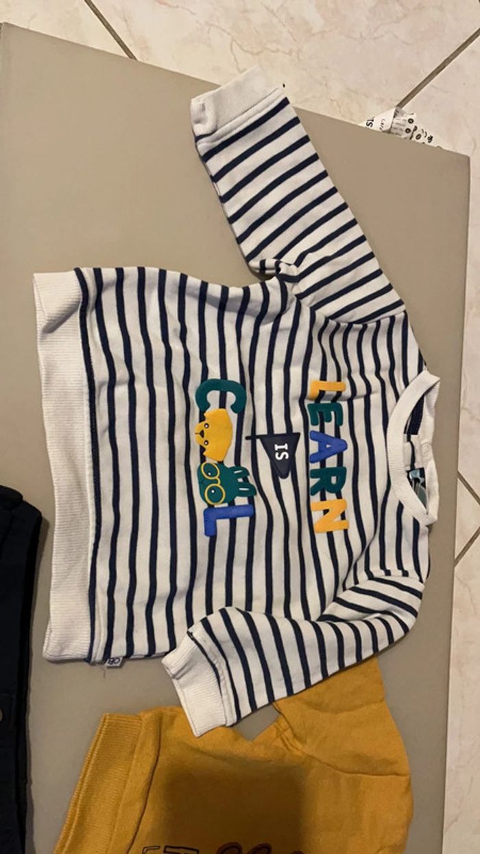 Ensemble 6 mois composé d’un jogging, de deux sweat (en haut sur la première photo) et de deux hauts à manches longues (au milieu sur la premiere photo) Excellent état #dressingdeMilo6moisgarçon