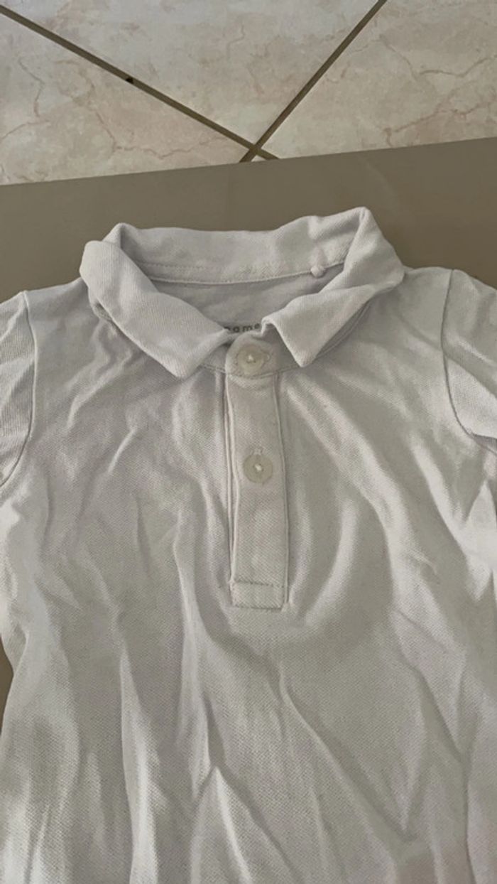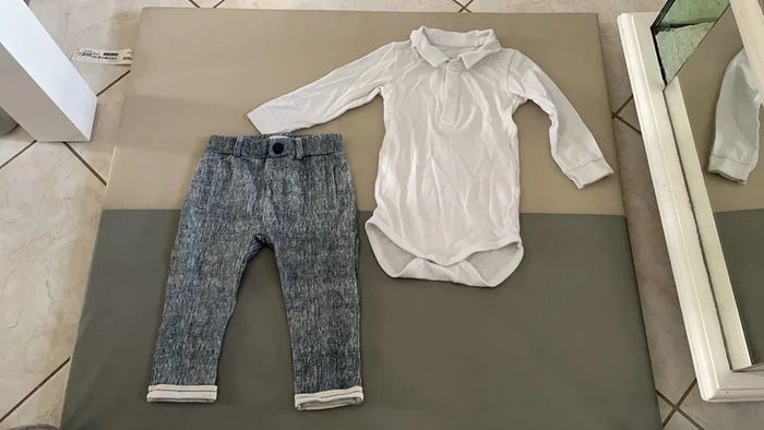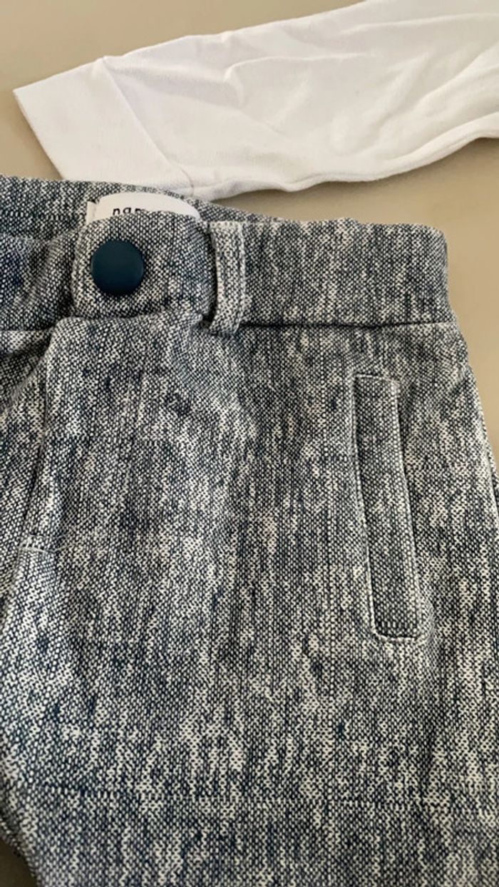 Ensemble Name it 6-9 mois (74 cm) composé d’un body polo et d’un pantalon élastique très confortable qui se ressert à la taille. Excellent état. Porté à l’occasion d’un mariage. #dressingdeMilo6moisgarçon #dressingdeMilo9moisgarçon