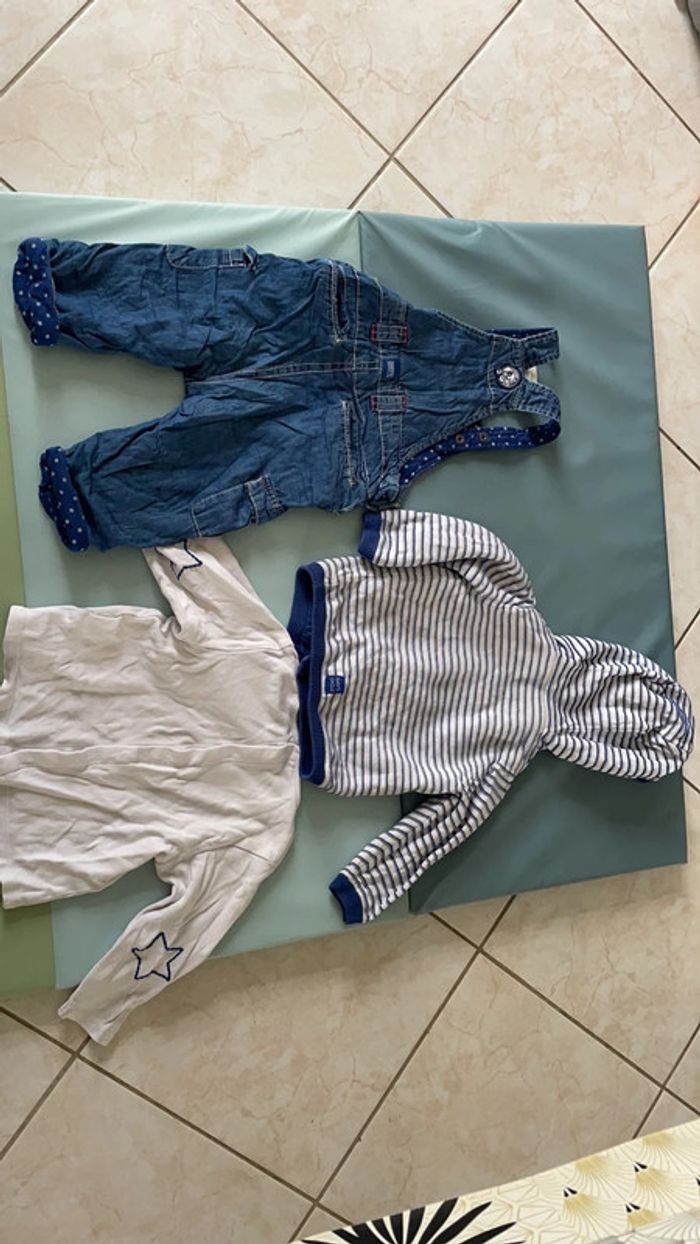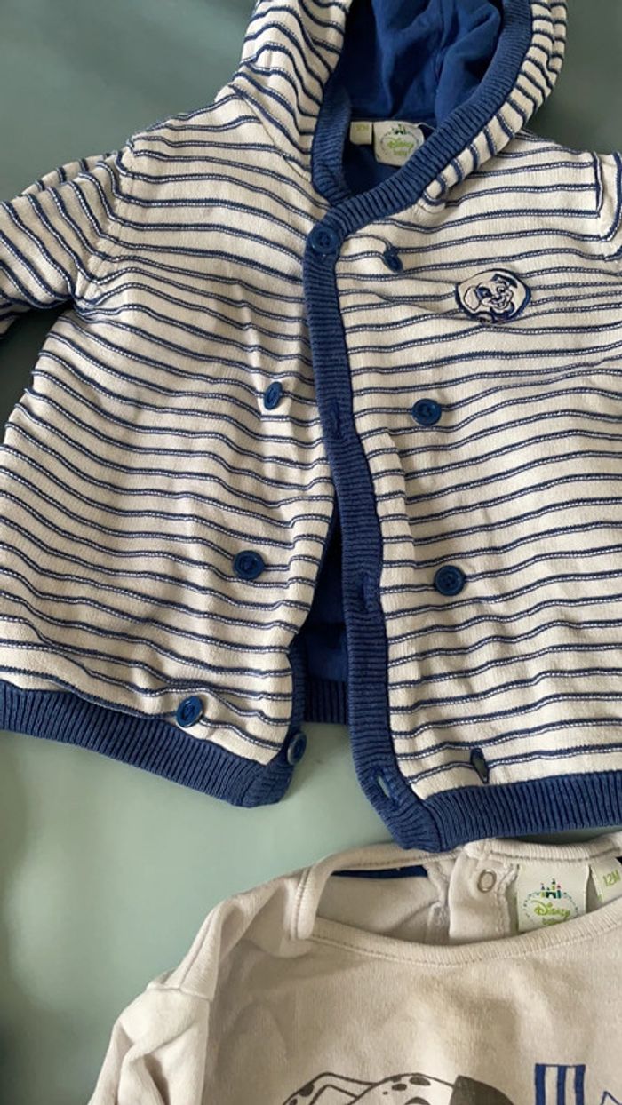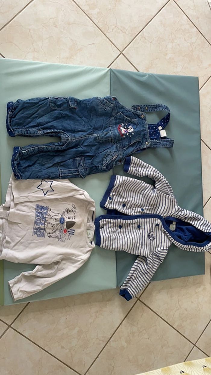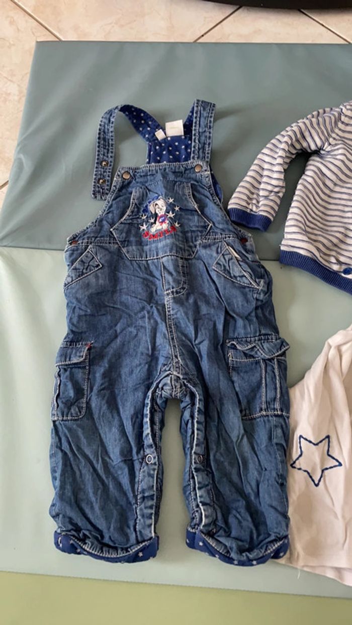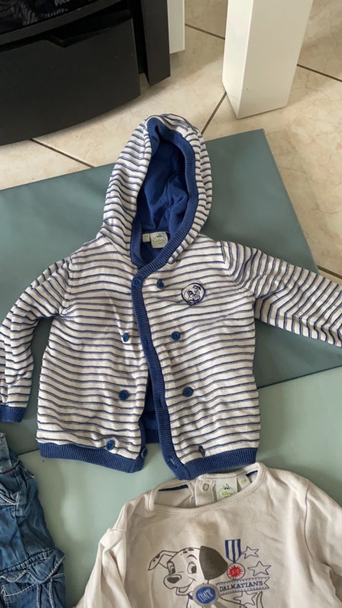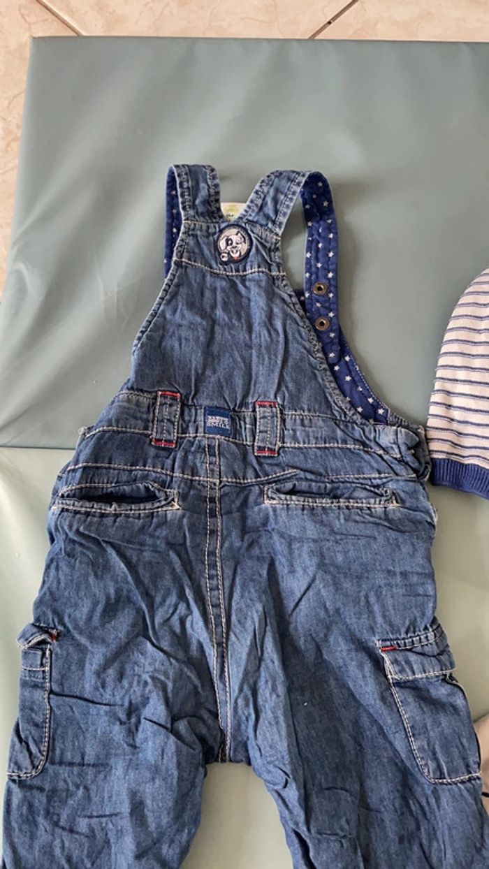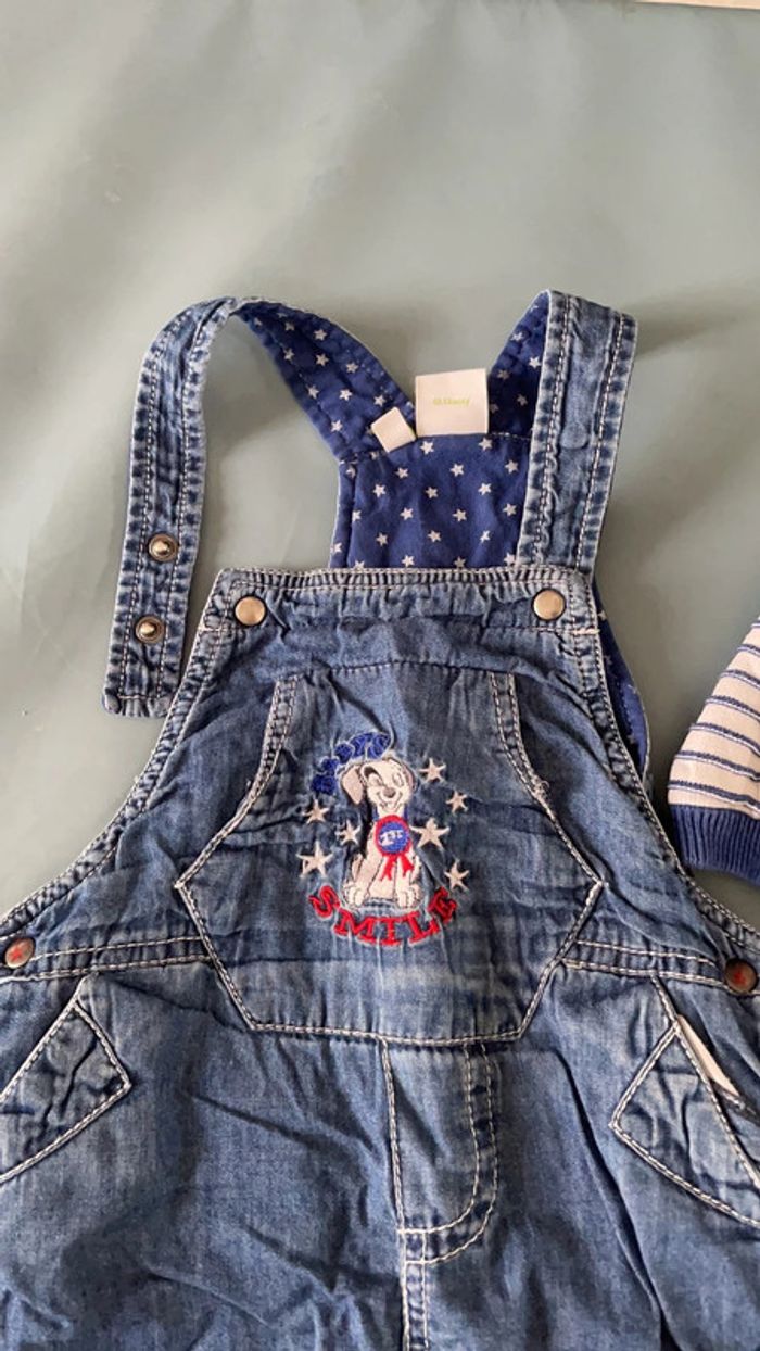 Ensemble Dalmatiens 12 mois composé d’une salopette en jean (avec bretelles réglables et ouverture entre les jambes, très pratique pour les changes), d’un haut à manches longues qui se ferme dans le dos avec des pressions, et d’une veste zippée à capuche. #dressingdeMilo12moisgarçon Très bon état même si le haut semble un peu moins blanc qu’auparavant (cf. dernière photo)