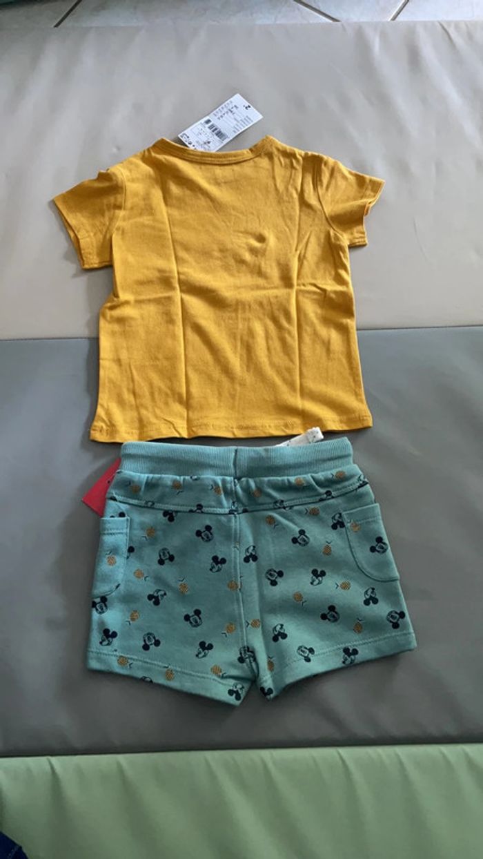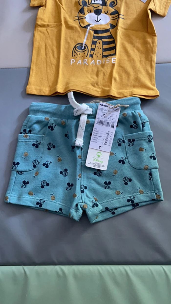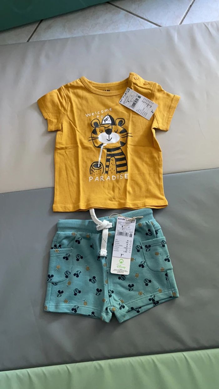 Ensemble été 9 mois composé d’un short stretch vert Mickey d’un t-shirt moutarde motif tigre. Neuf avec étiquette (acheté 9€ l’ensemble en prévision de l’été dernier mais oublié dans l’armoire 😅). Vendu 6€ l’ensemble. #dressingdeMilo9moisétégarçon