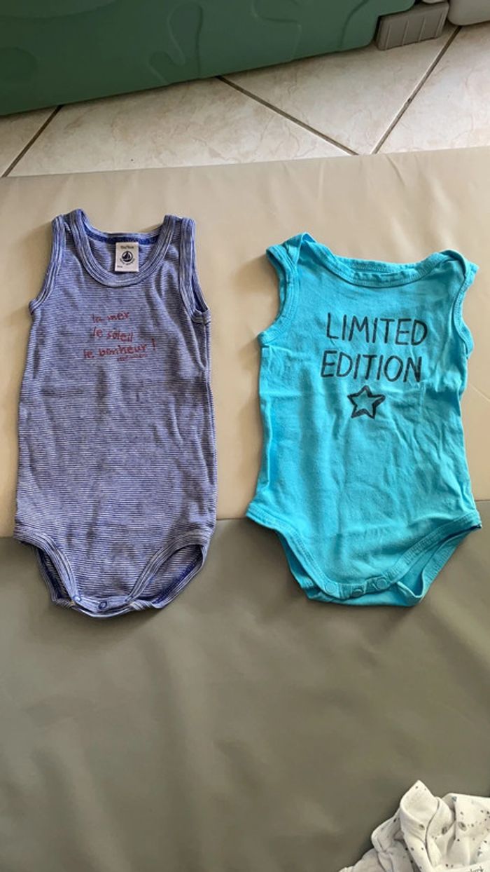Lot de 2 bodies sans manche 74 cm (12 mois) en très bon état. #dressingdeMilo12moisétégarçon