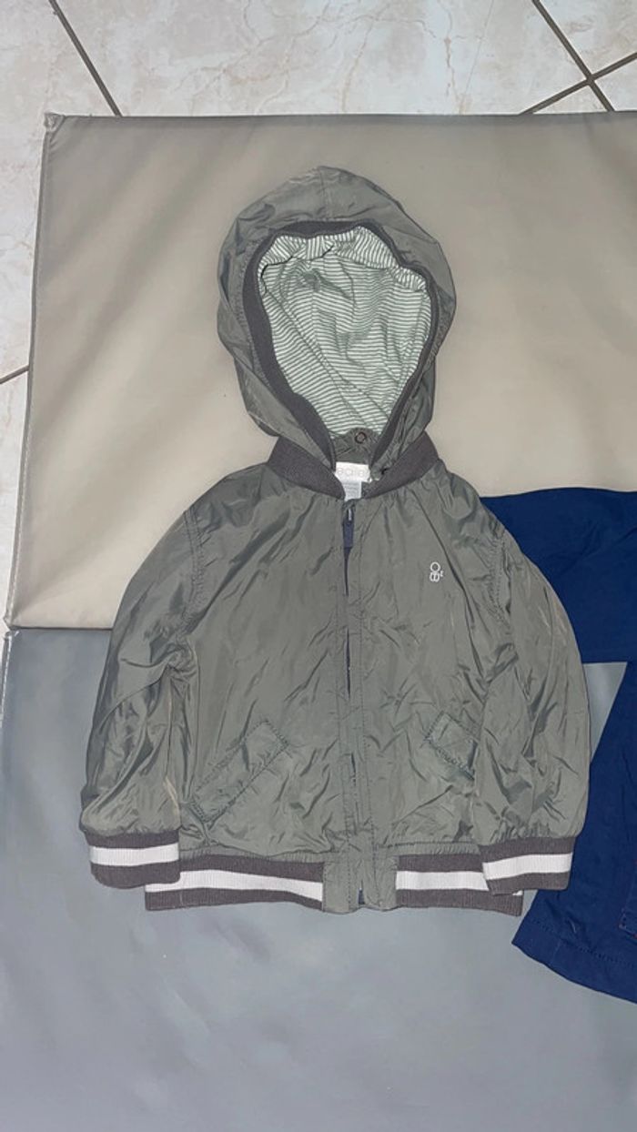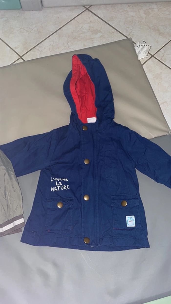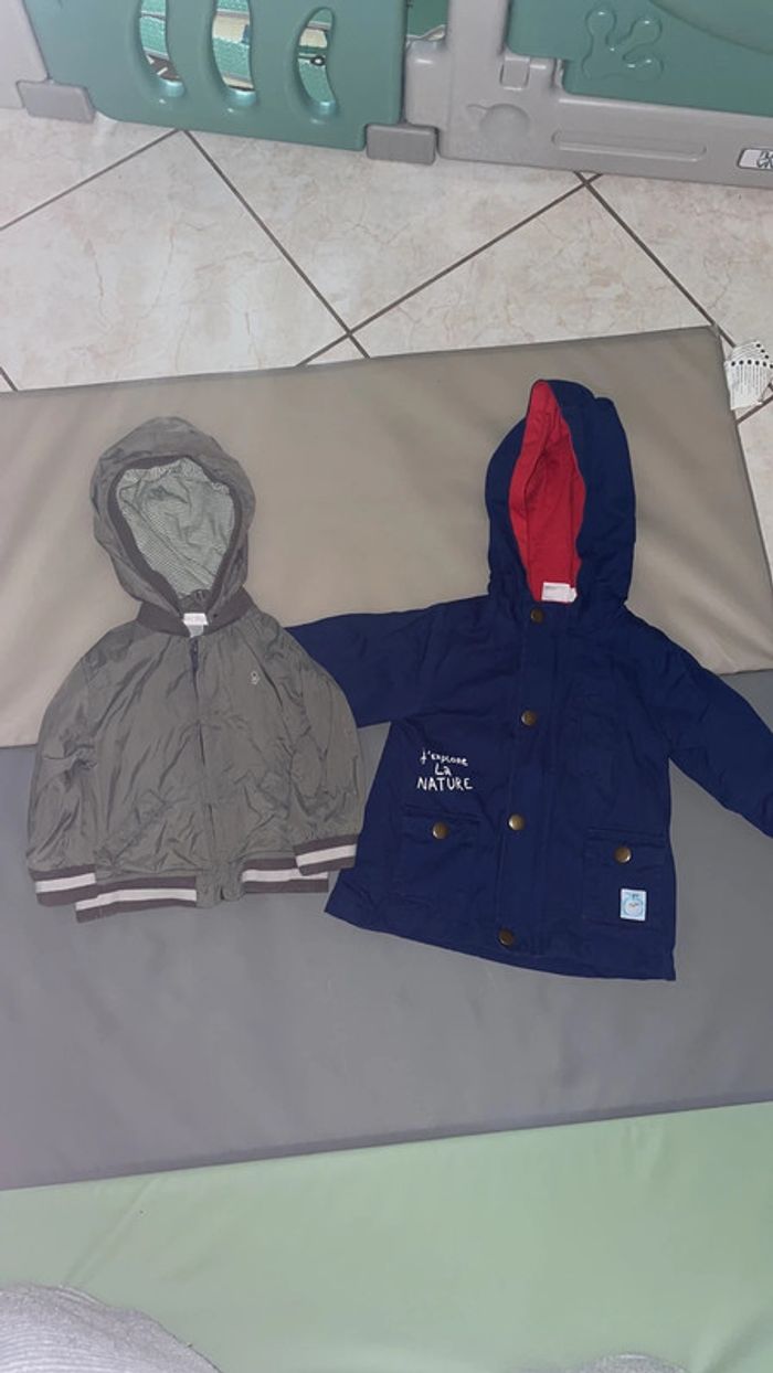 Lot de 2 vestes à capuche 6 mois. Une kaki avec capuche amovible et une bleue foncé, intérieur rouge. Excellent état, proche du neuf. Possible de vendre au détail 5€ pièce #dressingdeMilo6moisgarçon