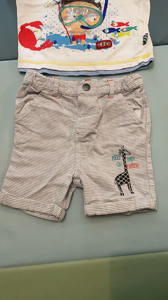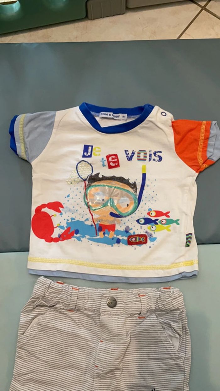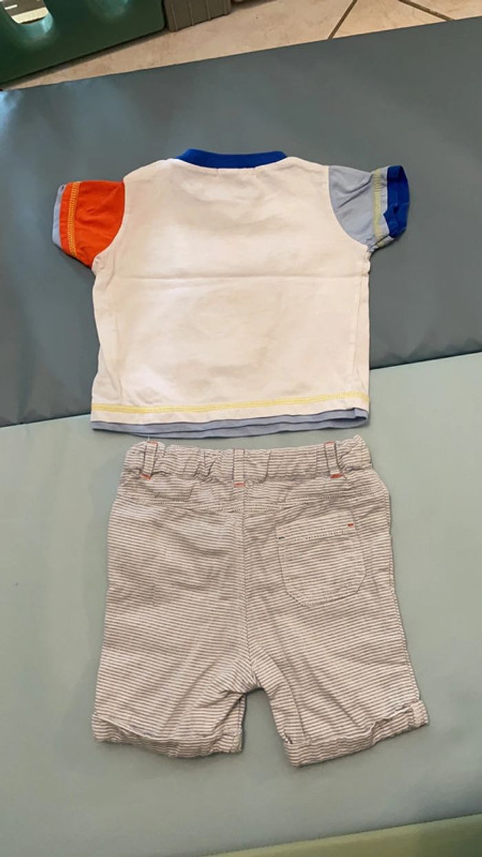 Ensemble été 9 mois composé d’un bermuda et d’un t-shirt. Le motif du t-shirt est en relief. Excellent état #dressingdeMilo9moisétégarçon