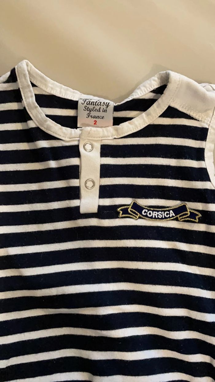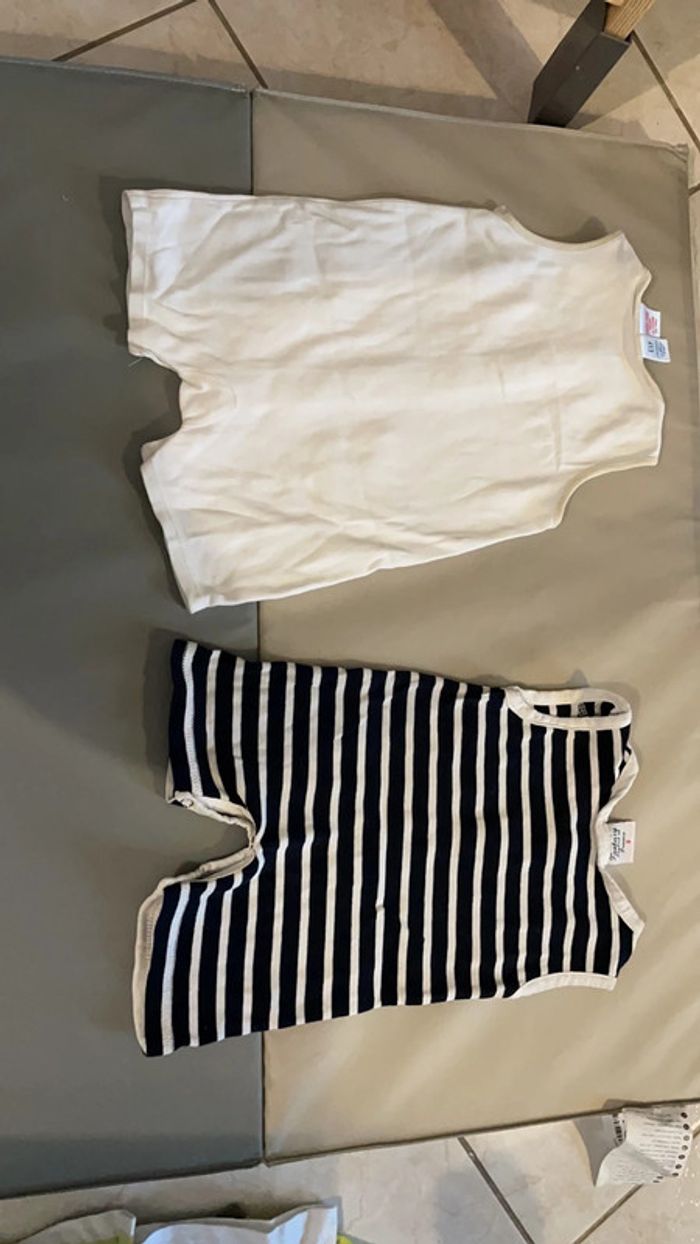 Lot de 2 combinaisons été 6 mois sans manche avec fermetures à l’avant et ouvertures entre les jambes très pratiques pour les changes. Motif Corse pour l’une et girafes pour l’autre (avec 2 poches sur l’avant) Très bon état #dressingdeMilo6moisétégarçon