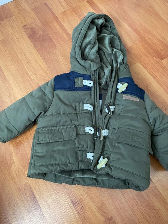Manteau 3 mois kaki, fourré bien chaud. Très bon état #dressingdeMilo3moisgarçon
