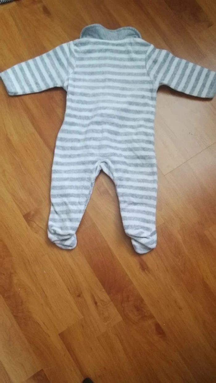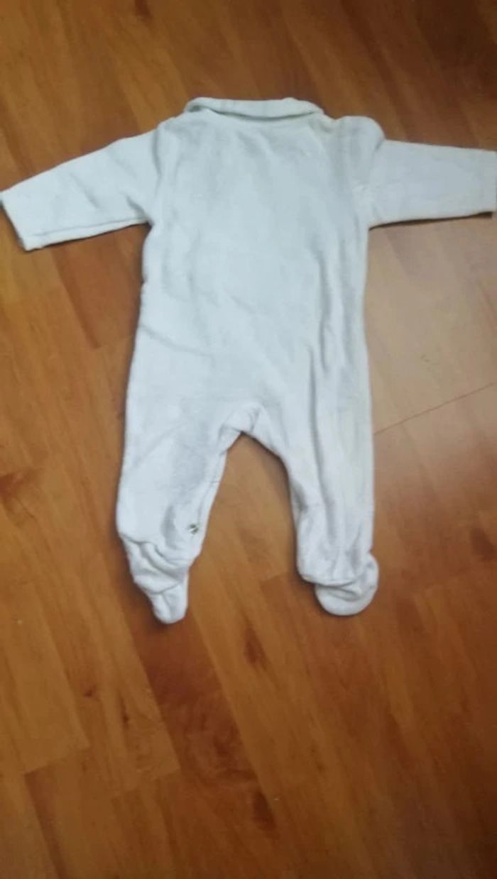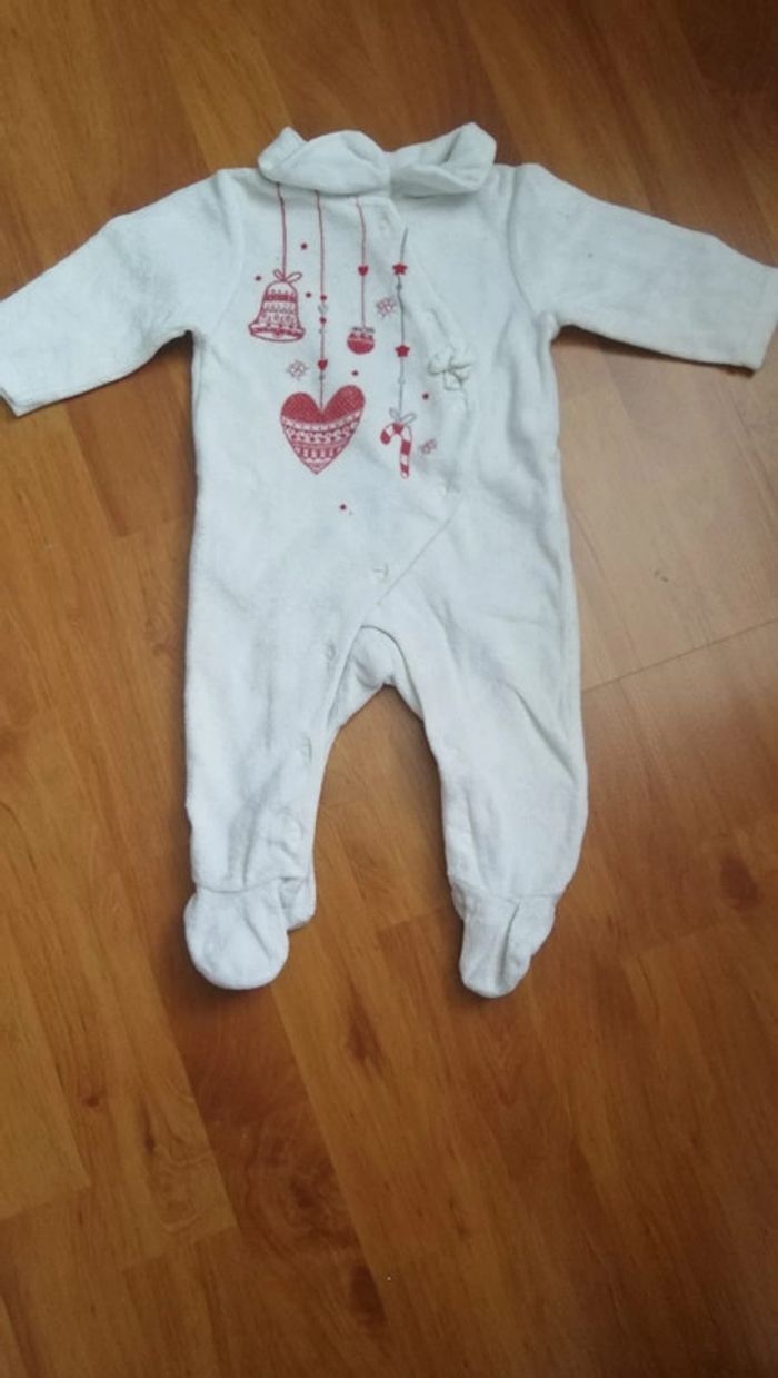 Lot de 2 pyjamas mixte de Noël à col 3 mois, un gris et blanc à rayures motif tête de renne et un blanc motif guirlande. Fermeture à l’avant. Très bon état. #dressingdeMilo3moisgarçon
