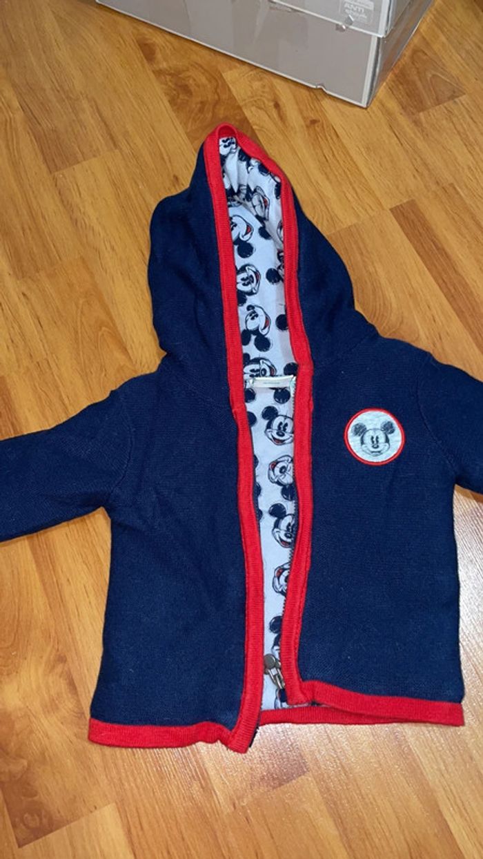 Veste chaude Mickey 3 mois avec capuche, fermeture zippée. Très bon état #dressingdeMilo3moisgarçon