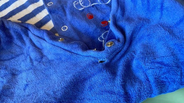 Pyjama 3 ou 6 mois (l’étiquette a été coupé), fermeture à l’avant par pressions. État moyen : un petit trou au niveau de la couture arrière et le bout des pieds abîmé. Il peut quand même dépanner donc je le donne sur simple demande. #dressingdeMilo3moisgarçon #dressingdeMilo6moisgarçon
