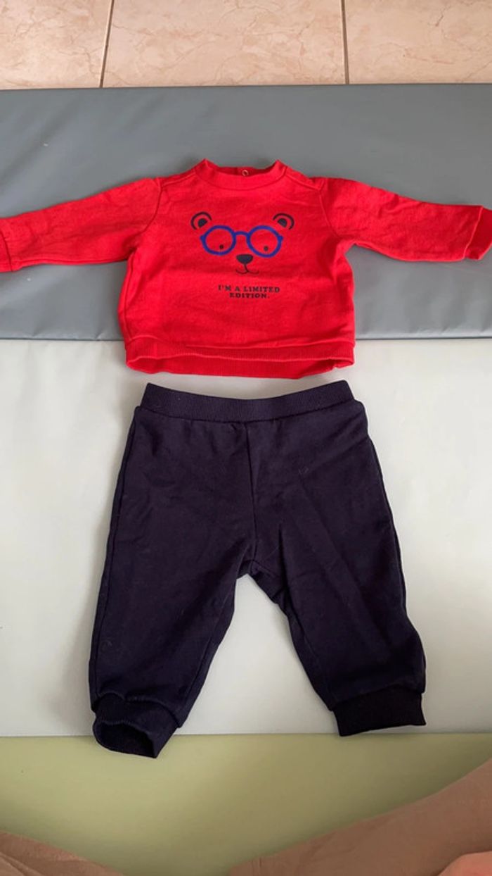 Ensemble 3-6 mois composé d’un pantalon style jogging et d’un sweat. Excellent état, porté 1 fois ou 2. #dressingdeMilo3moisgarçon #dressingdeMilo6moisgarçon
