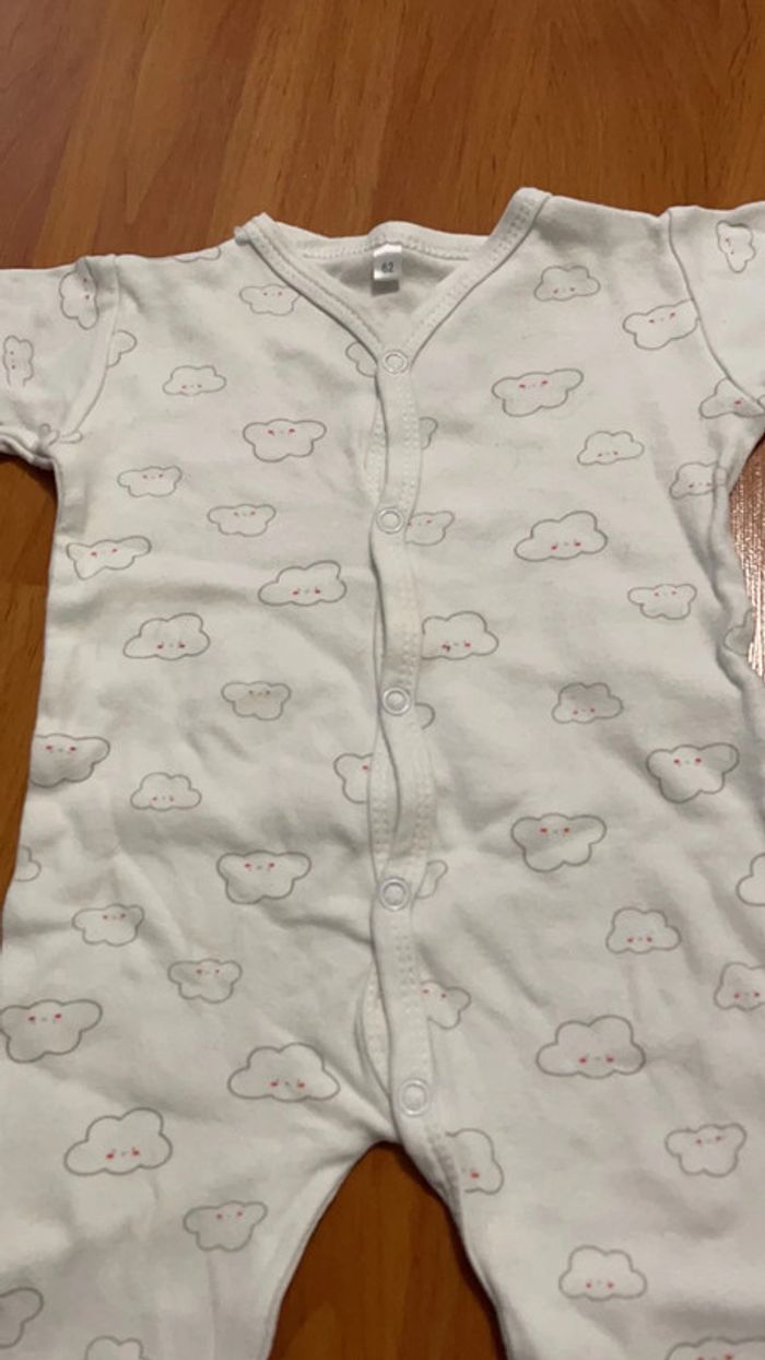 Pyjama fin mixte taille 3 mois (62) blanc à motif nuage. Ouverture sur le devant très pratique. Très bon état. #dressingdeMilo3moisgarçon
