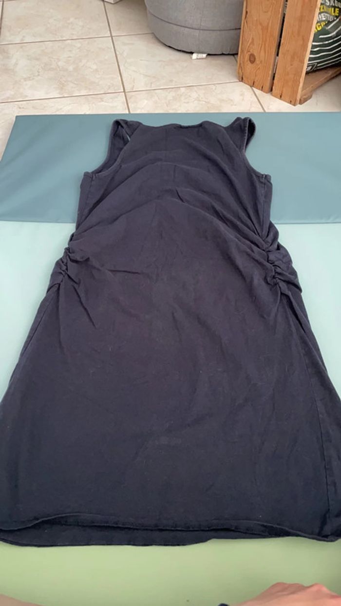 Robe maternité sans manche, noir avec motif pied gris pailletés. Taille 38-40. Très bon état #dressingdeJennivêtementsgrossesse