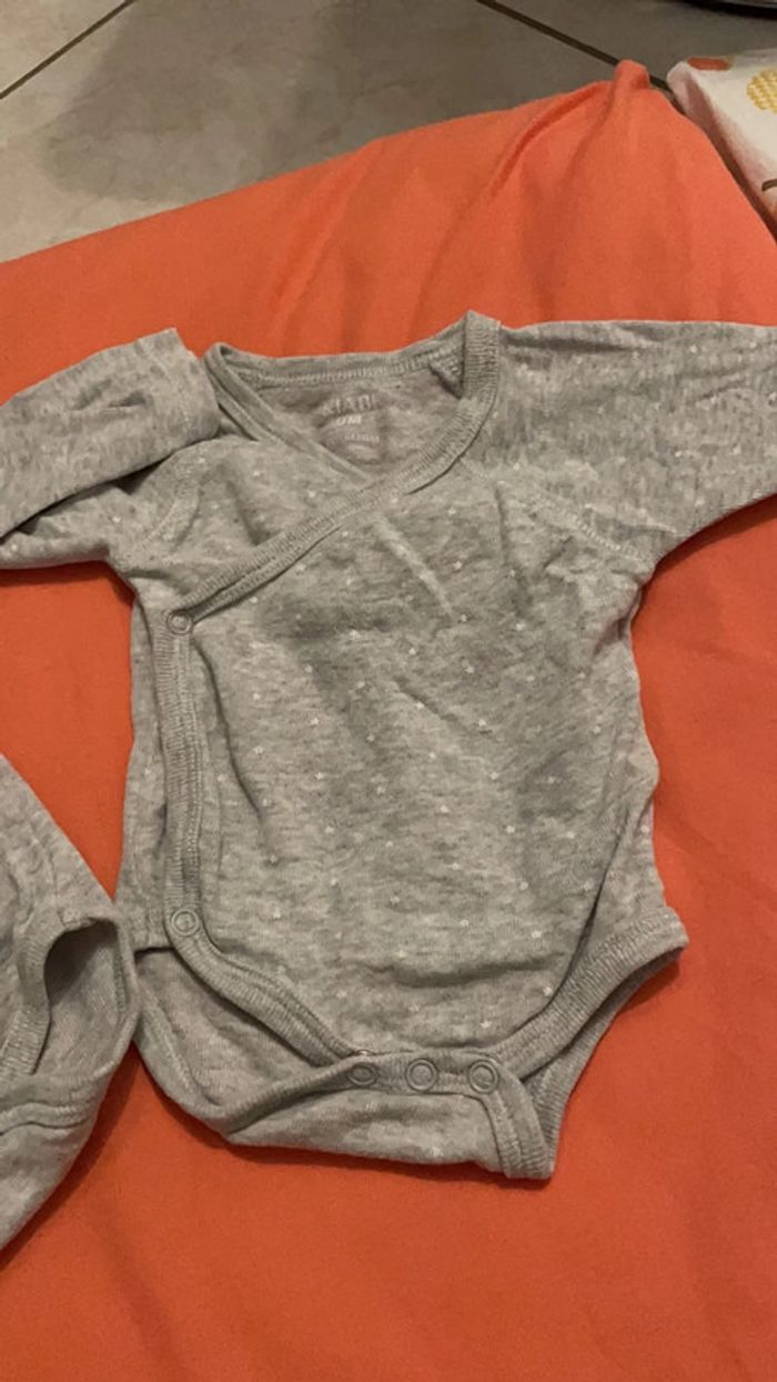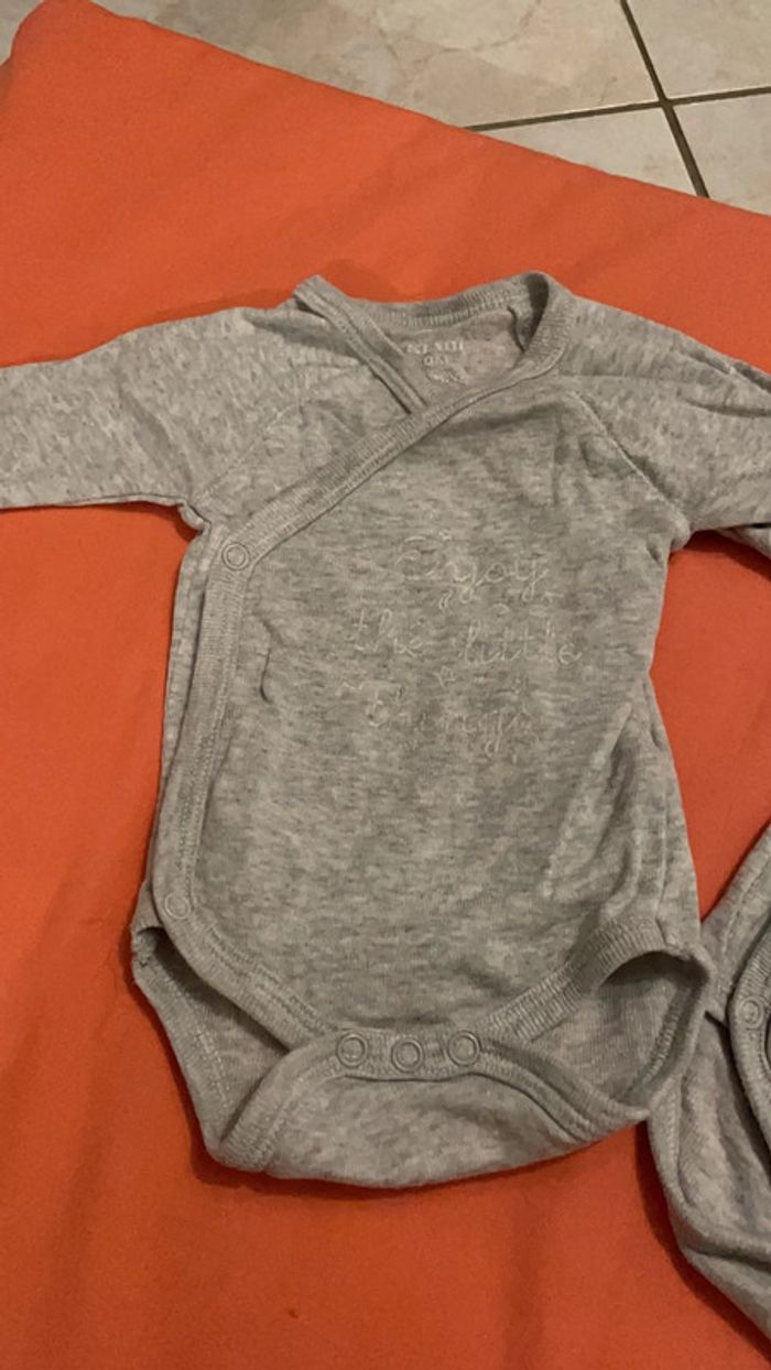 Lot de 2 bodies manches longues mixtes (gris et blanc) taille naissance. Excellent état